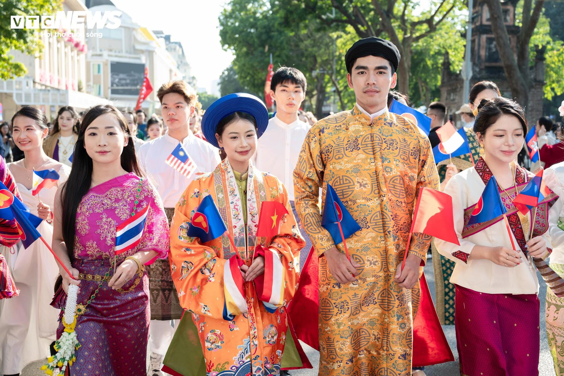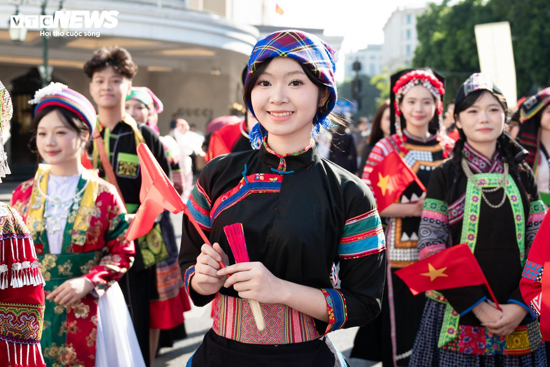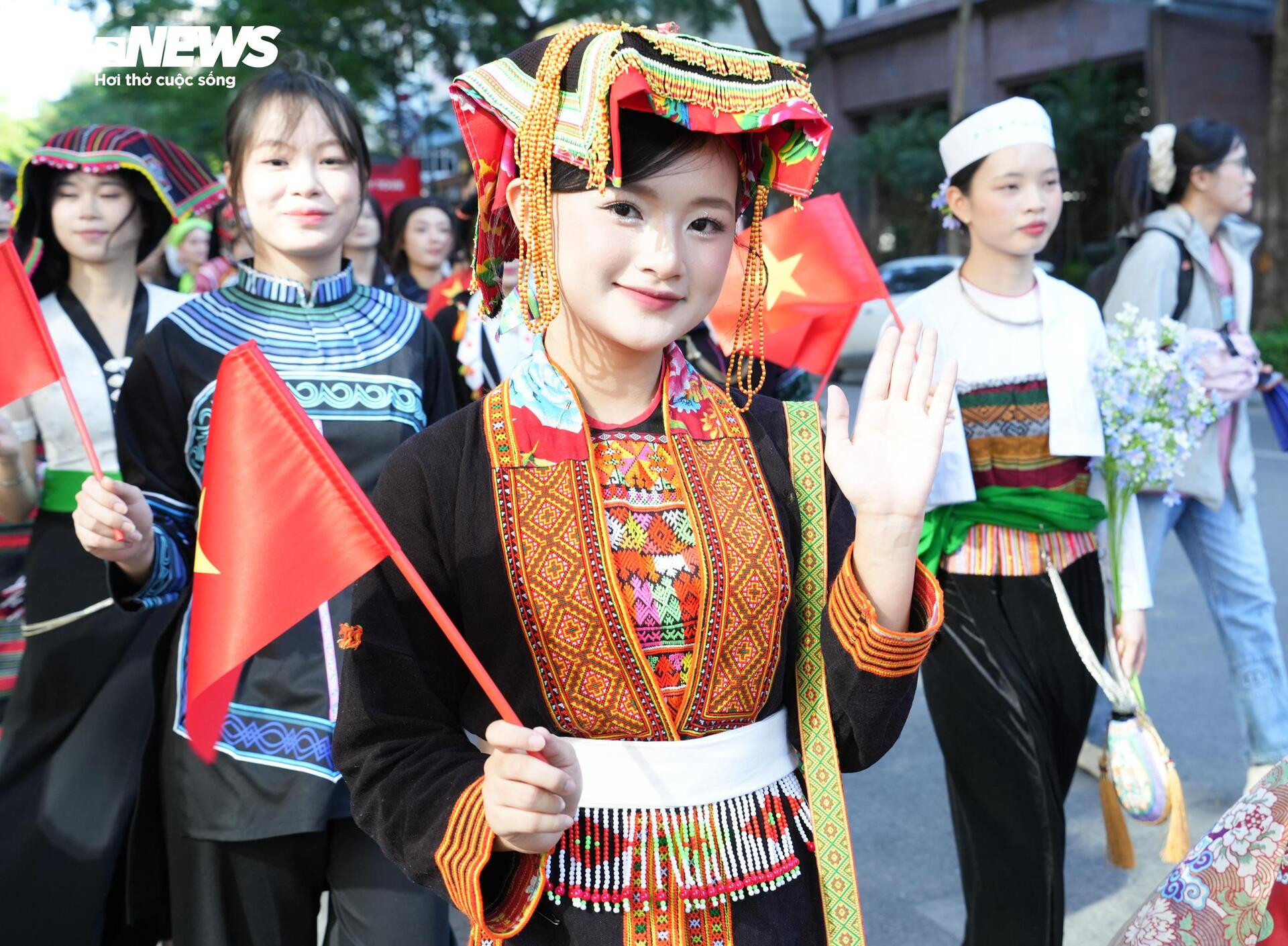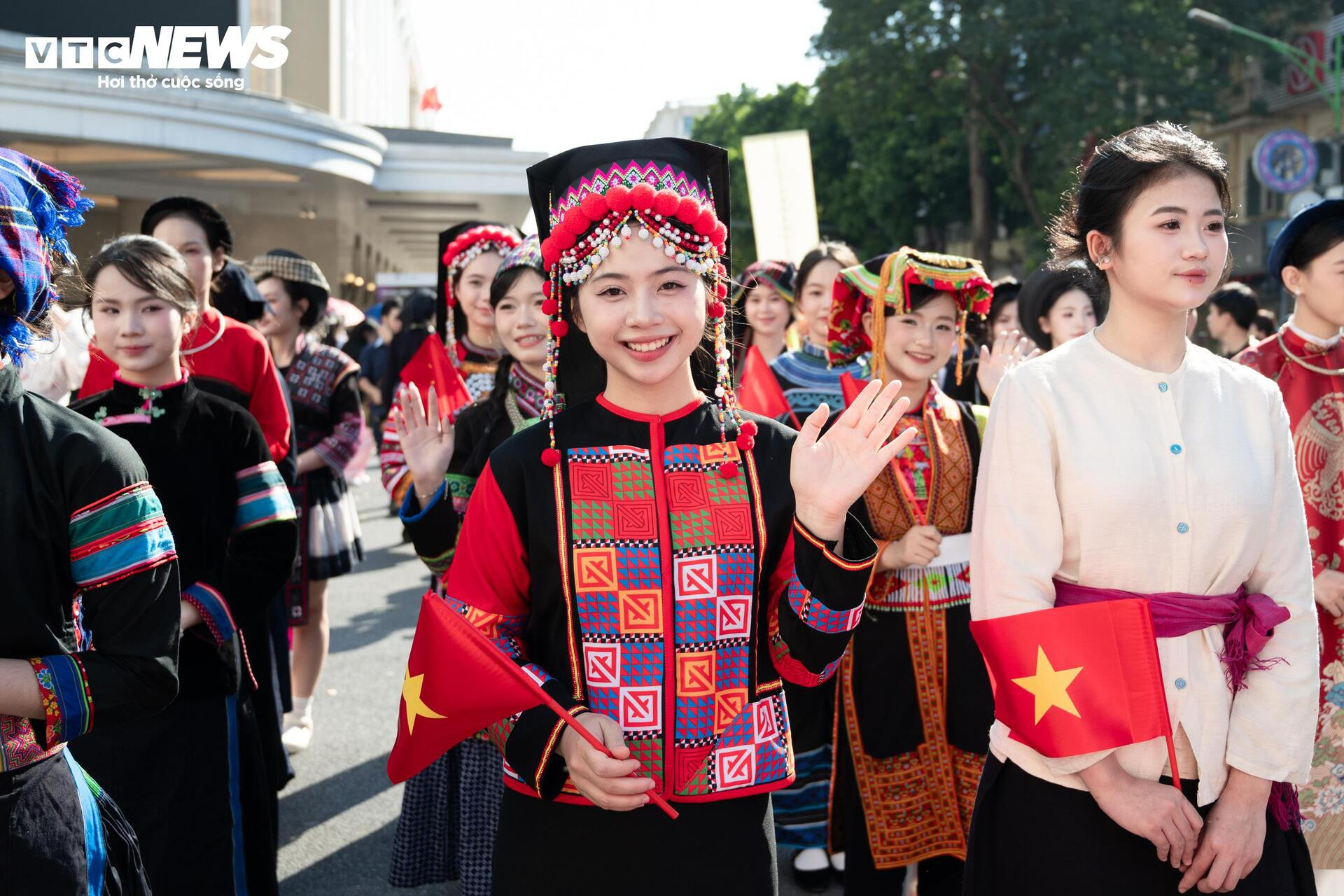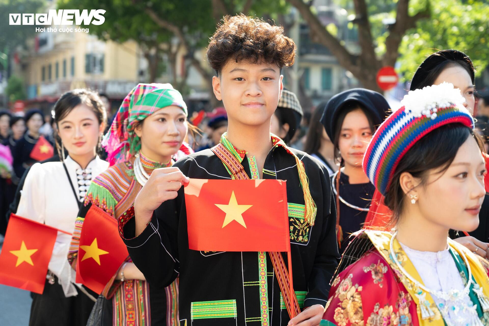 Đoàn diễu hành rực rỡ sắc màu truyền thống di chuyển qua các tuyến phố quanh Hồ Hoàn Kiếm và khu vực Quảng trường Đông Kinh Nghĩa Thục, tạo nên không gian văn hóa sống động giữa mùa thu Hà Nội.