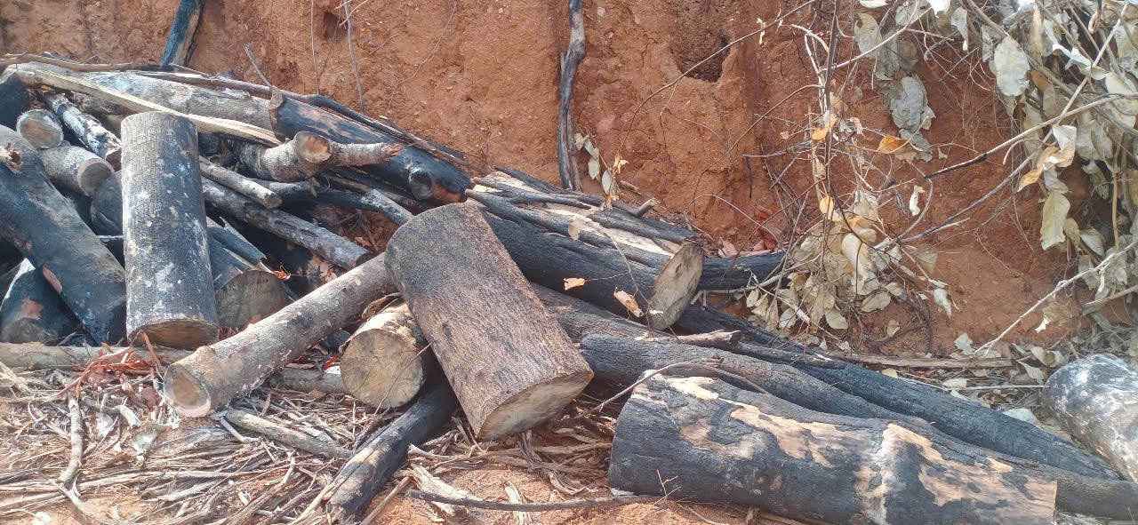 Gỗ rừng còn lại tại hiện trường bị cưa hạ, cắt khúc ngổn ngang.