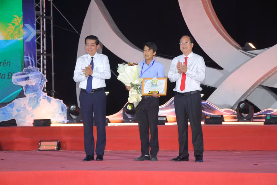 Ban Tổ chức trao giải Nhất Cuộc thi Gạo ngon ĐBSCL.
