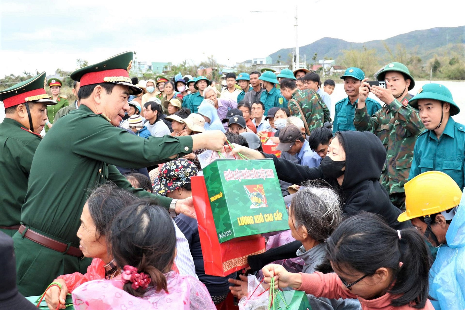 Trước đó, ngày 22/11, Đại tướng Phan Văn Giang – Bộ trưởng Bộ Quốc phòng đã đến xã Tuy Phước thăm hỏi người dân vùng lũ. Đoàn đã trao 20 tỷ đồng từ lãnh đạo Đảng, Nhà nước, MTTQ Việt Nam; cùng 10 tỷ đồng, 10 tấn lương khô, 5.000 bộ quần áo và 5.000 màn tuyn từ Bộ Quốc phòng. Quân khu 5 cũng trao hàng nghìn suất quà thiết thực cho các hộ dân chịu thiệt hại nặng.