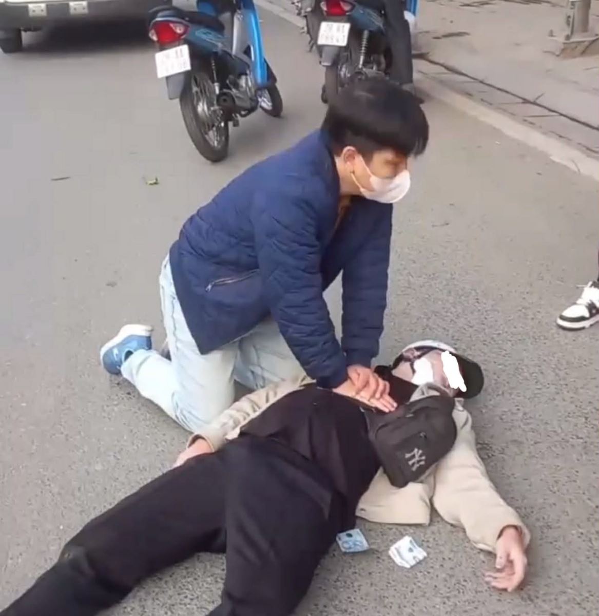 Ngay tại hiện trường, phát hiện nạn nhân rơi vào tình trạng nguy kịch, bác sĩ Tiến đã ngay lập tức tiến hành ép tim ngoài lồng ngực và hỗ trợ cấp cứu ban đầu.