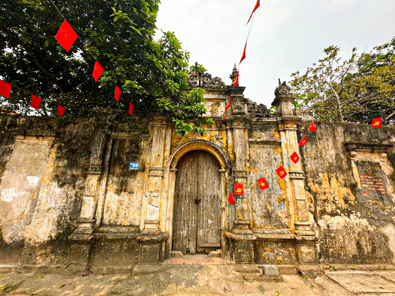 Tại làng Cự Đà còn có vài ngôi nhà mang riêng kiến trúc Art Deco với hình khối và hoa văn trang trí vuông vức cổ điển.