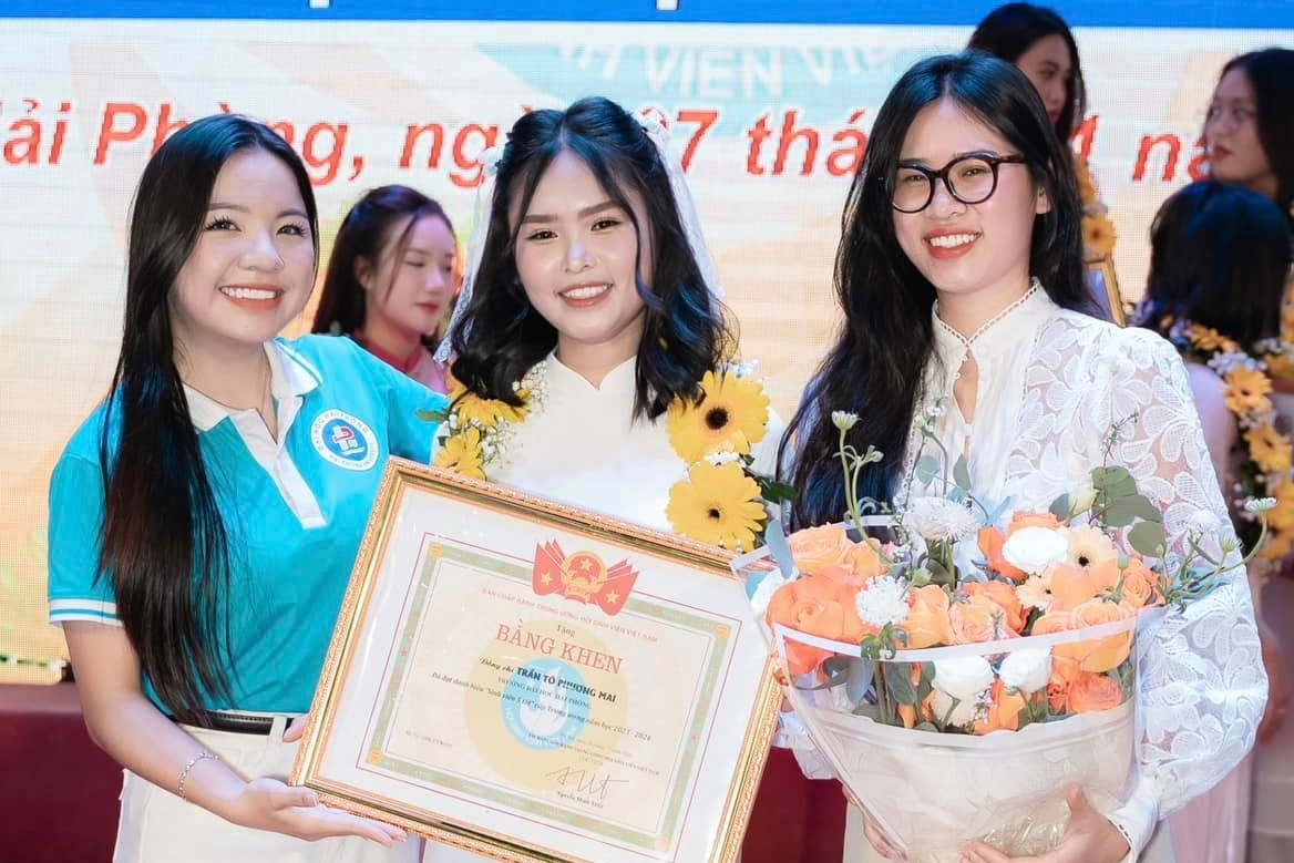 Kỷ niệm của Phương Mai cùng chị gái và chị Nguyễn Thị Thu An (bên trái trái), Chủ tịch Hội Sinh viên Trường Đại học Hải Phòng khóa X (2025-2028).