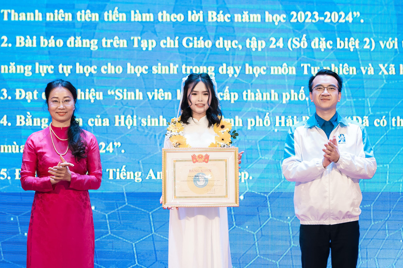 Phương Mai nhận bằng khen danh hiệu Sinh viên 5 tốt cấp Trung ương năm học 2023-2024.
