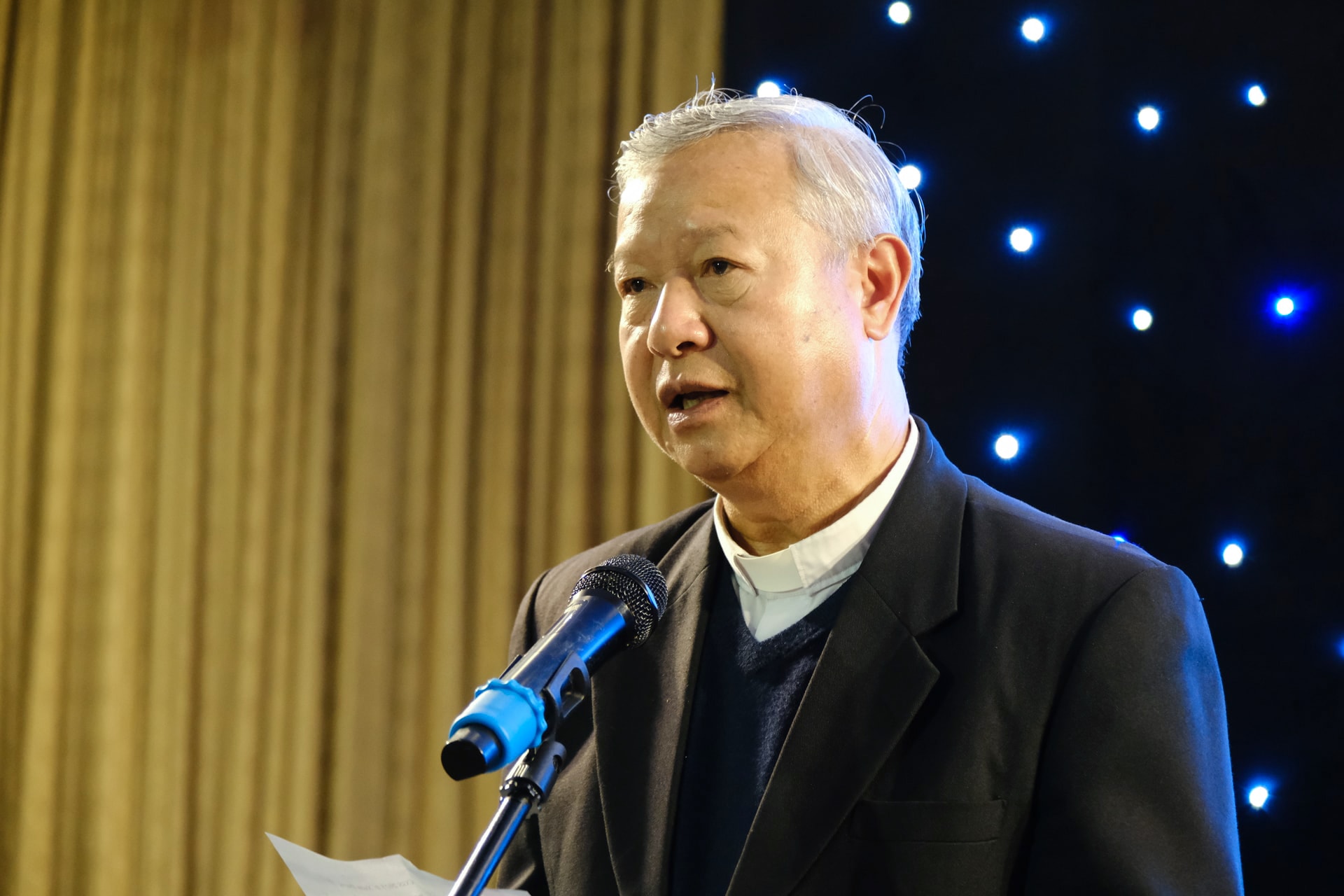Linh mục Hoàng Văn Chính, Tổng đại diện Giáo phận Đà Lạt, Chủ tịch Ủy ban Đoàn kết Công giáo tỉnh Lâm Đồng phát biểu tại chương trình