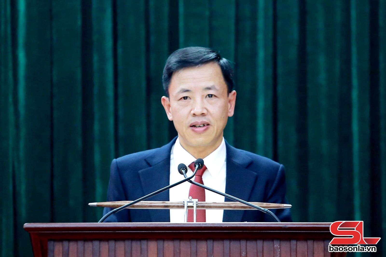Lãnh đạo Báo và Phát thanh, truyền hình Sơn La phát biểu tại cuộc gặp mặt.