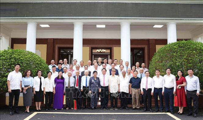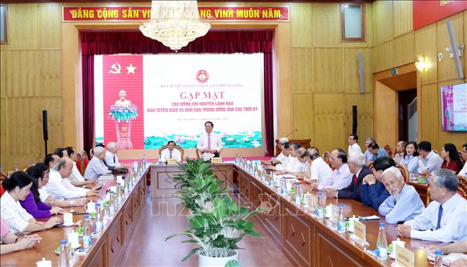 Ủy viên Bộ Chính trị, Bí thư Trung ương Đảng, Trưởng ban Tuyên giáo và Dân vận Trung ương Nguyễn Trọng Nghĩa chủ trì gặp mặt. Cùng dự có nguyên Chủ tịch nước Nguyễn Minh Triết.