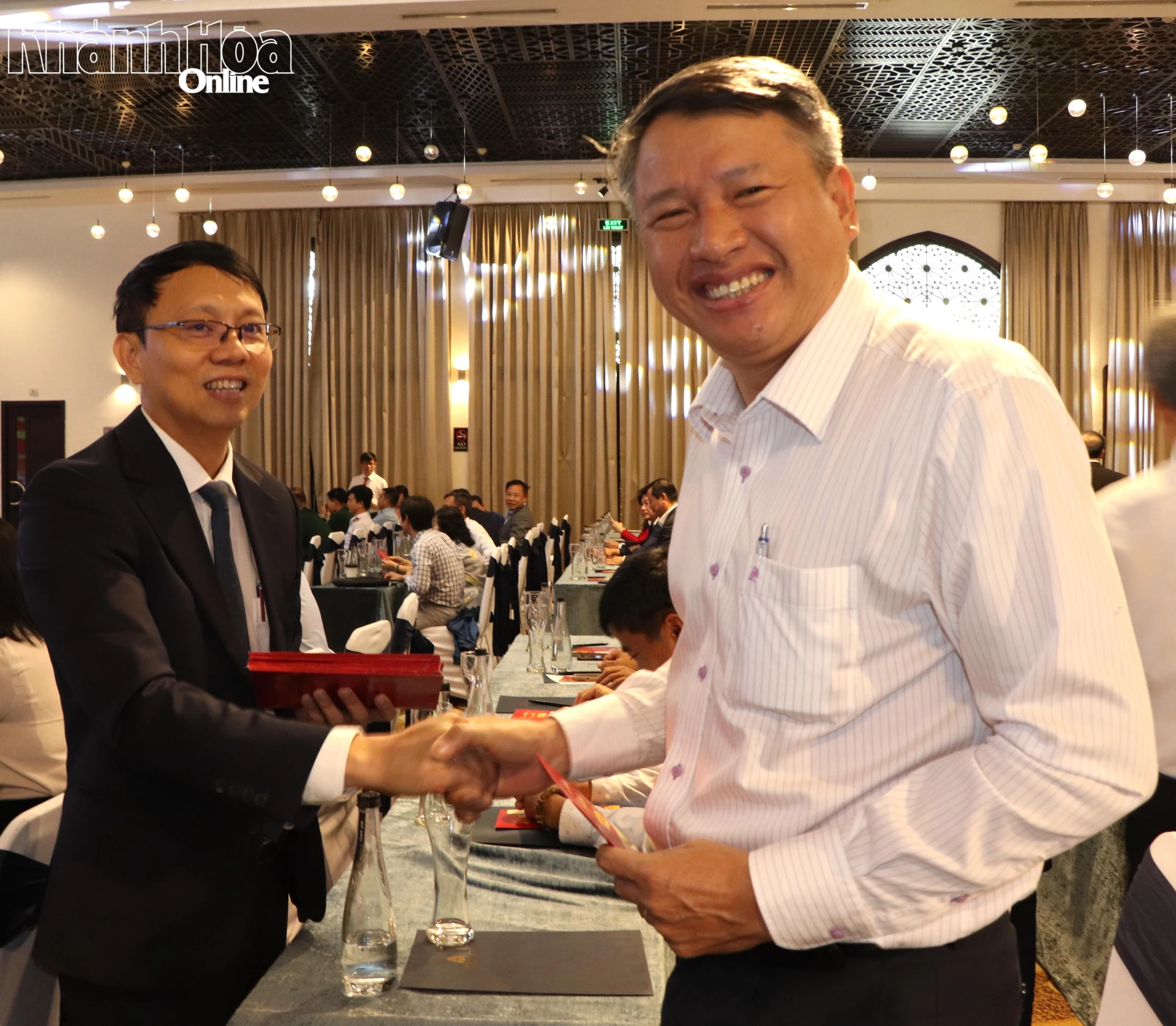 Đồng chí Nguyễn Khắc Hà và đồng chí Lê Hữu Trí tham dự buổi gặp mặt.