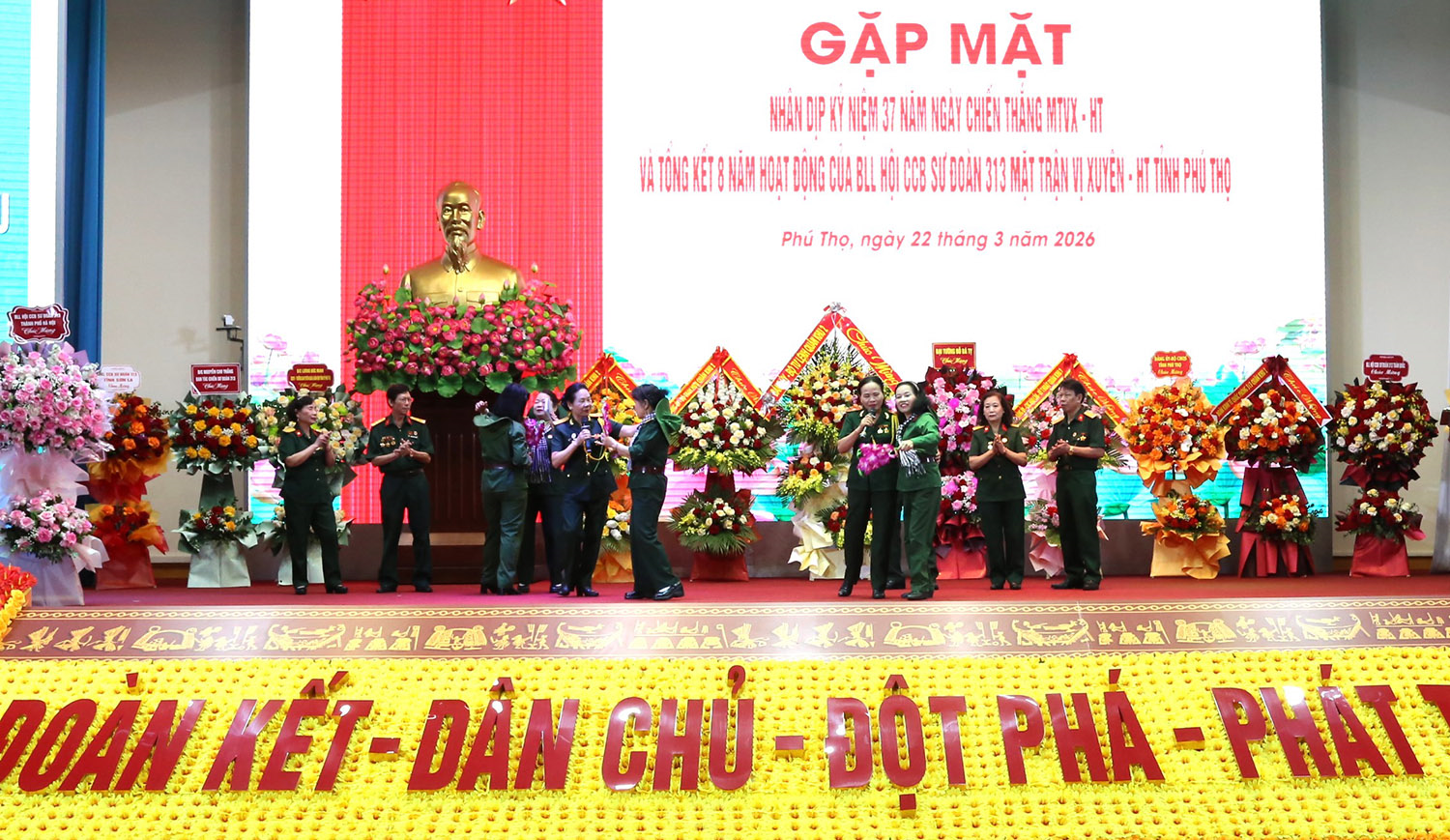 Dự buổi gặp mặt có các đồng chí: Đại tướng Đỗ Bá Tỵ, nguyên Ủy viên Trung ương Đảng, nguyên Phó chủ tịch Quốc hội, nguyên Tổng Tham mưu trưởng, nguyên Thứ trưởng Bộ Quốc phòng, nguyên Tư lệnh Quân khu 2; Thiếu tướng Nguyễn Đăng Khải, Phó tư lệnh, Tham mưu trưởng Quân khu 2; đại biểu Ban liên lạc Hội CCB Sư đoàn 313 toàn quốc.