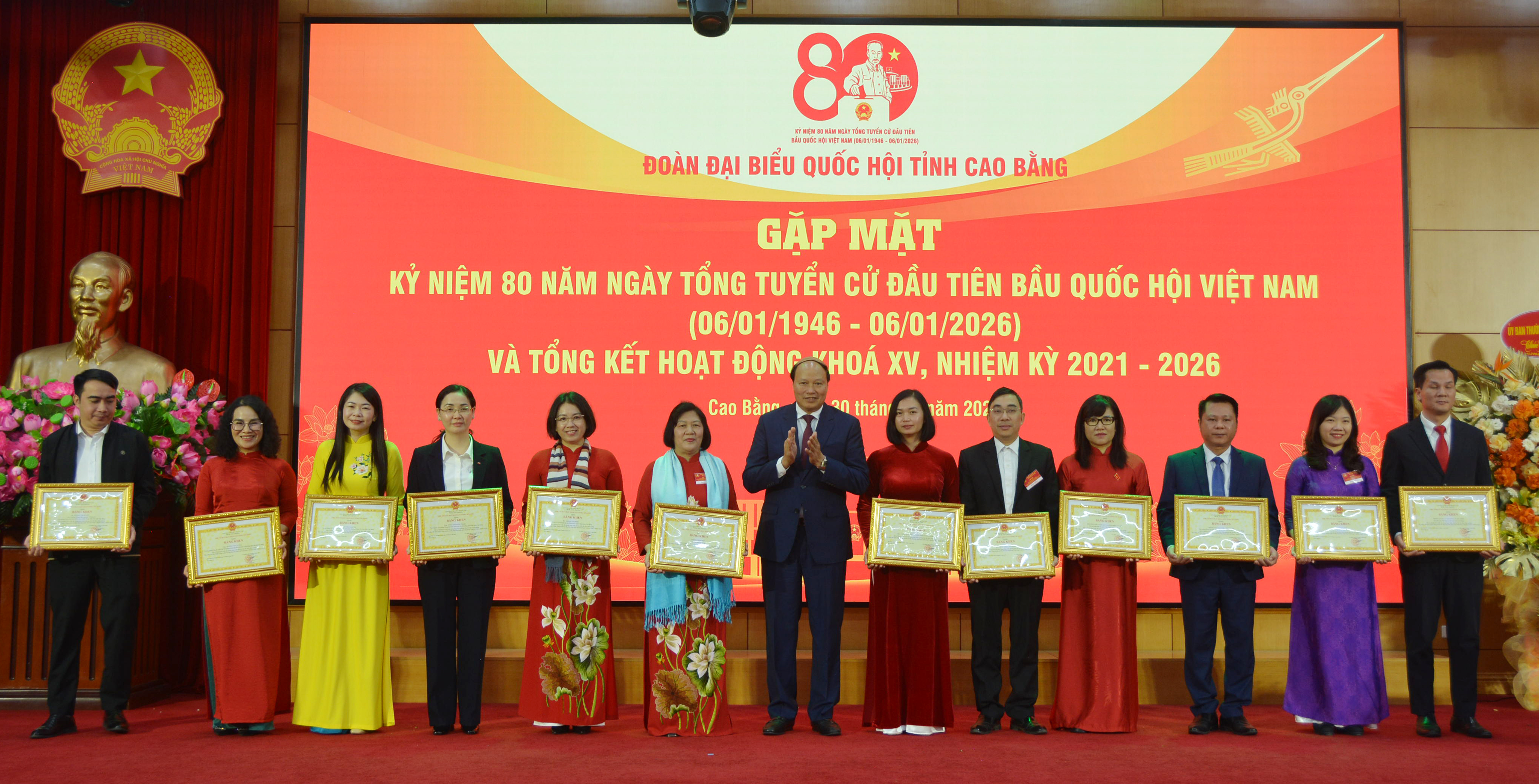 Nhân dịp này, 7 cá nhân được trao tặng Kỷ niệm chương vì sự nghiệp Quốc hội Việt Nam của Ủy ban Thường vụ Quốc hội; 4 cá nhân được trao tặng Huy hiệu “Vì sự nghiệp phát triển tỉnh Cao Bằng”; 3 cá nhân được trao tặng Kỷ niệm chương "Vì sự nghiệp xây dựng và phát triển tỉnh Cao Bằng".