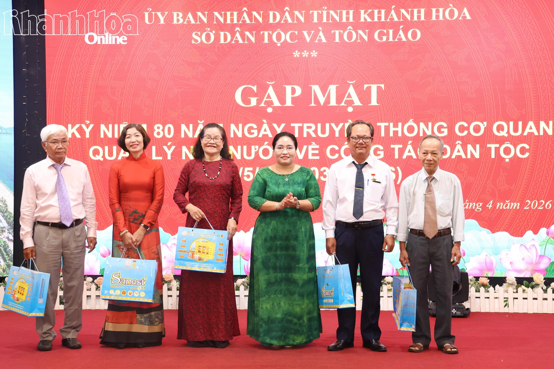 Sáng 28-4, Sở Dân tộc và Tôn giáo tỉnh Khánh Hòa tổ chức gặp mặt kỷ niệm 80 năm Ngày truyền thống cơ quan quản lý nhà nước về công tác dân tộc (3-5-1946 - 3-5-2026). Tham dự có đồng chí Chamaleá Thị Thủy - Ủy viên Ban Thường vụ Tỉnh ủy, Giám đốc Sở Dân tộc và Tôn giáo; đại diện các sở, ban, ngành, địa phương, các thế hệ cán bộ làm công tác dân tộc qua các thời kỳ trên địa bàn tỉnh.