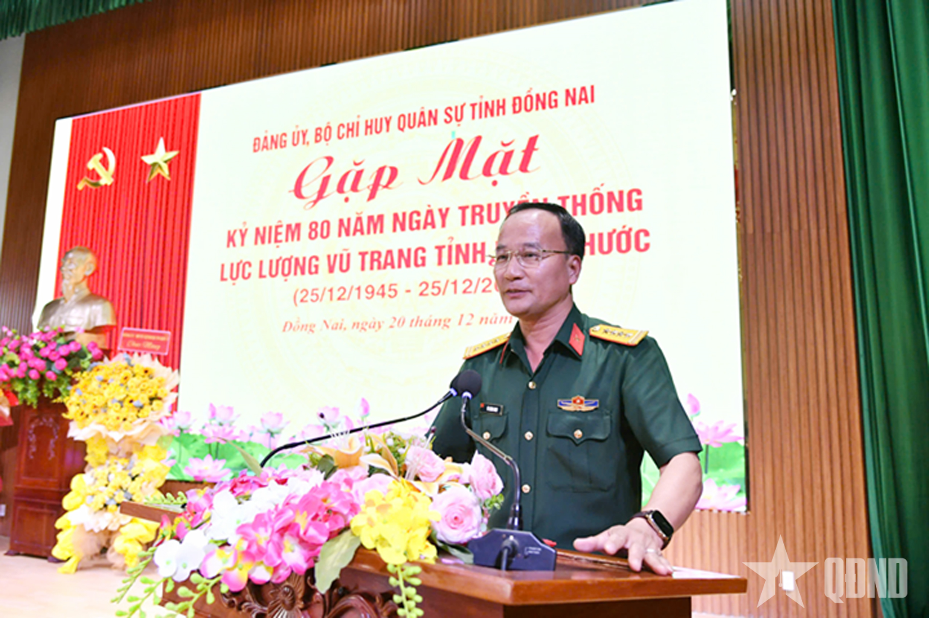 Đại tá Võ Thành Danh, Chỉ huy trưởng Bộ CHQS tỉnh Đồng Nai trình bày diễn văn tại buổi gặp mặt.
