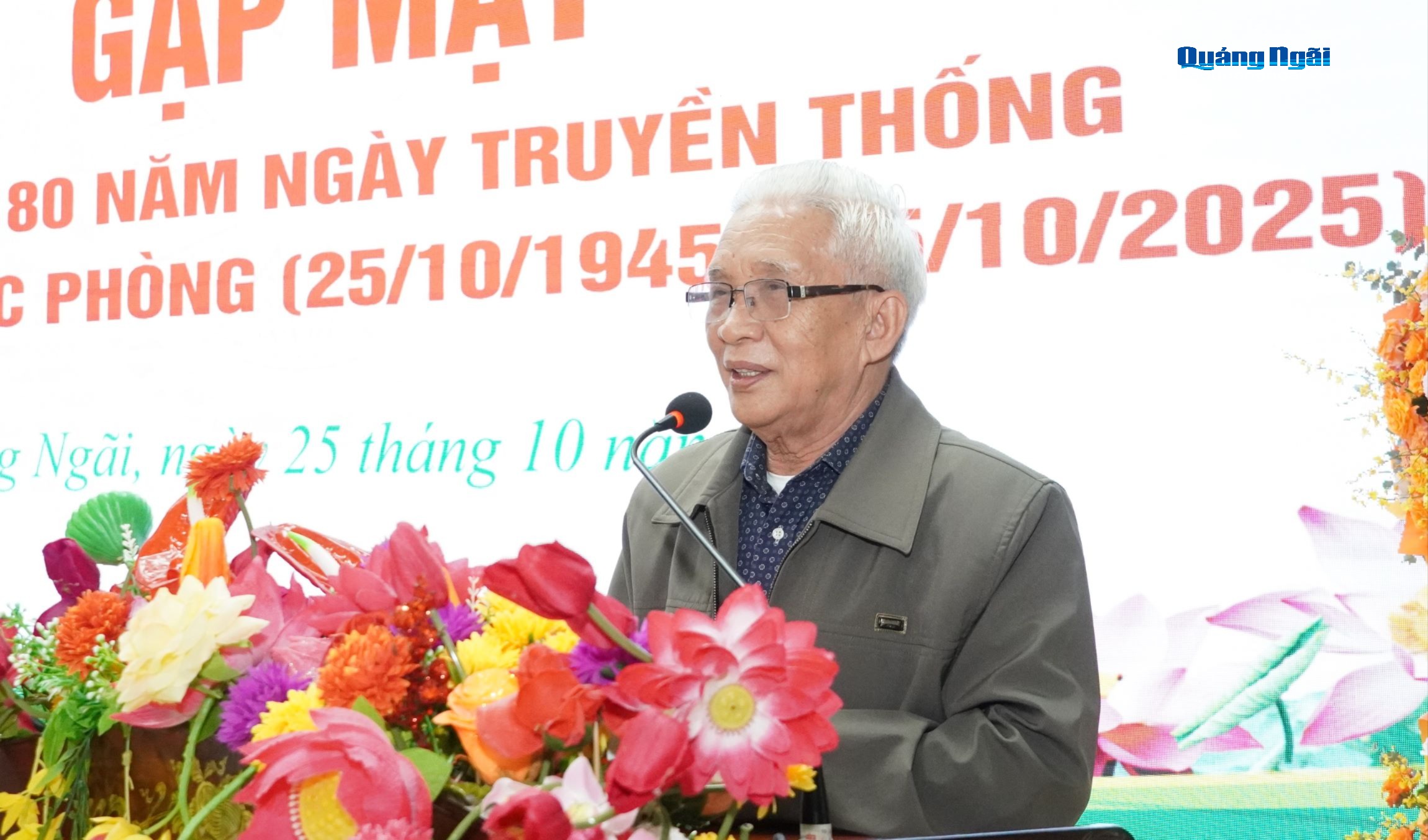 Sáng 25/10, Ban liên lạc Cựu chiến binh ngành Tình báo Quốc phòng tỉnh Quảng Ngãi tổ chức buổi gặp mặt cựu chiến binh nhân dịp kỷ niệm 80 năm Ngày truyền thống ngành Tình báo Quốc phòng Việt Nam (25/10/1945 - 25/10/2025).