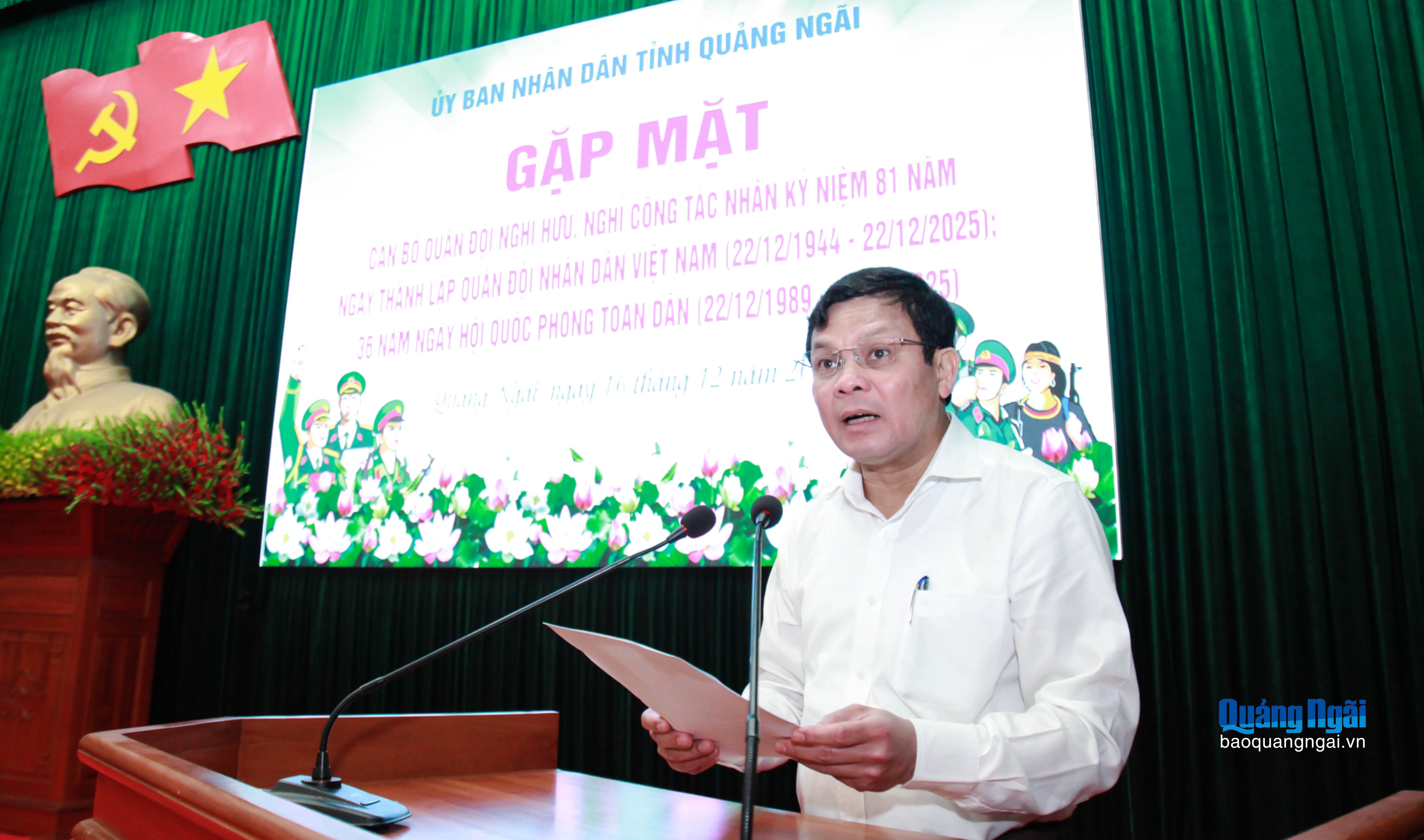 Ban Thường vụ Tỉnh ủy mong muốn thời gian tới, cán bộ, chiến sĩ lực lượng vũ trang tỉnh cùng đội ngũ cán bộ quân đội đã nghỉ hưu, nghỉ công tác tiếp tục đồng hành với địa phương, phát huy trí tuệ, kinh nghiệm, góp phần xây dựng nền quốc phòng toàn dân vững chắc, bảo vệ nền tảng tư tưởng của Đảng, chung sức xây dựng tỉnh Quảng Ngãi phát triển nhanh, bền vững.