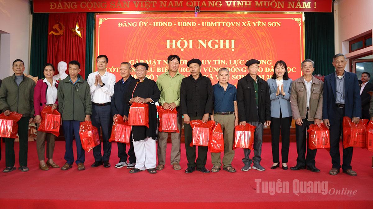 Tại hội nghị, 47 người có uy tín, lực lượng cốt cán tiêu biểu được lãnh đạo xã Yên Sơn trao tặng quà.