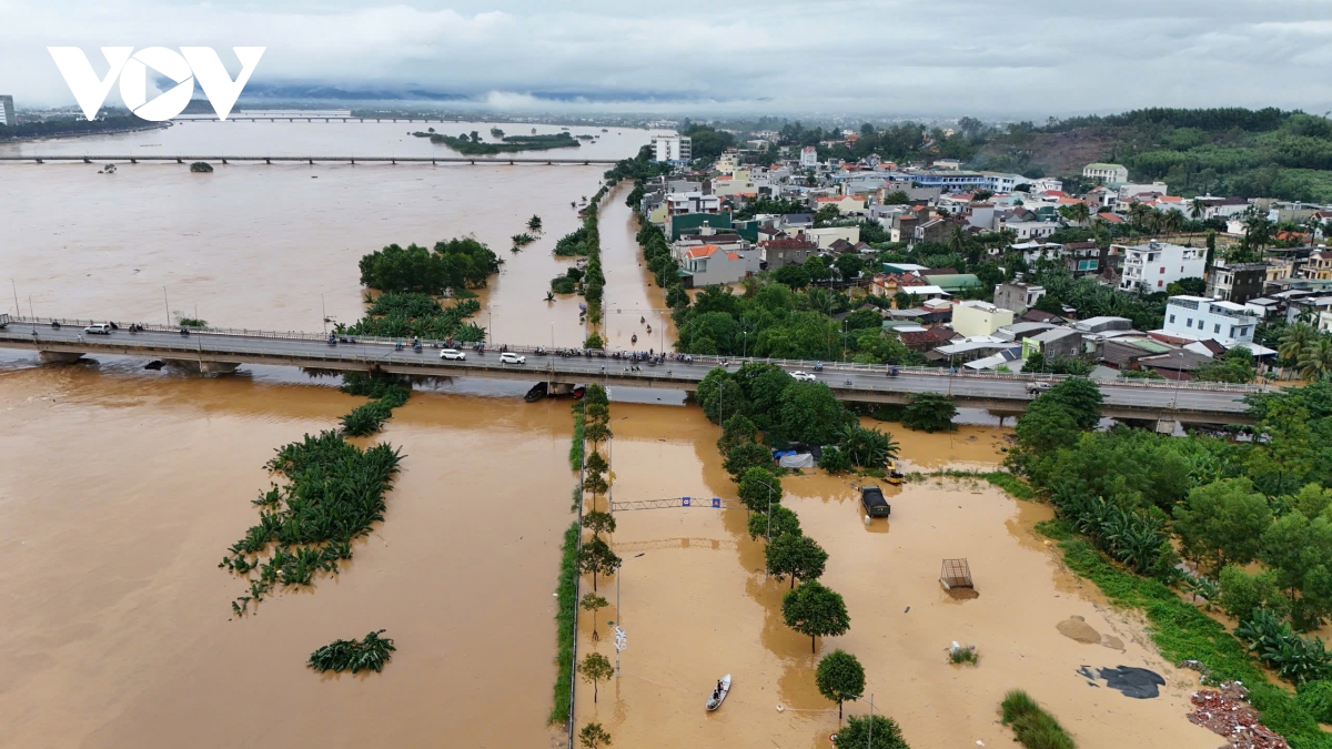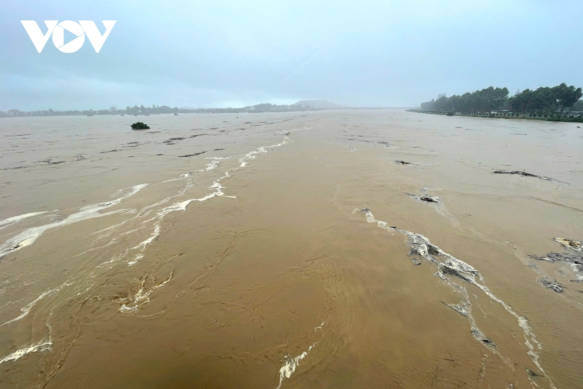 Đến 19h30 ngày 29/10, cơ bản dòng nước từ sông Trà Khúc đã được chặn không tràn vào khu vực trung tâm phường Nghĩa Lộ, tỉnh Quảng Ngãi.