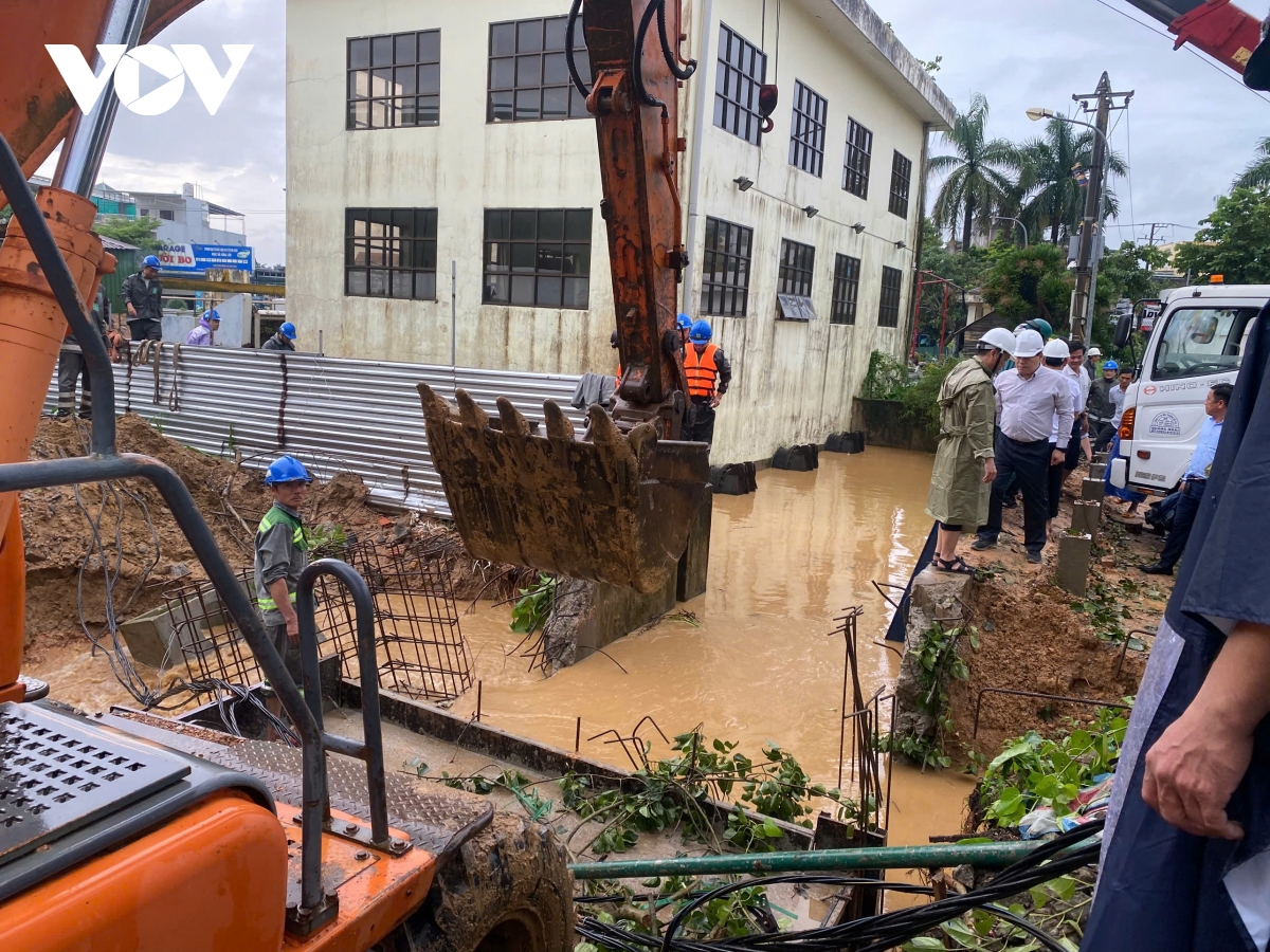 Khu vực miệng cống nằm gần một công trình đang thi công, khi thực hiện bịt miệng cống, cơ quan chức năng huy động xe cơ giới và vật liệu rất nhanh.