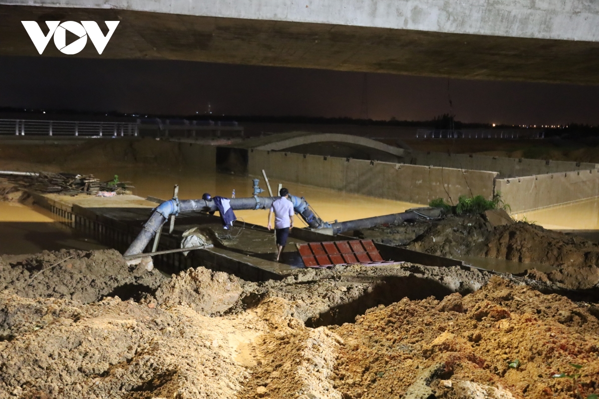 Cống có kích thước lớn, áp lực nước từ sông rất lớn nên việc bịt kín miệng cống để chặn dòng gặp nhiều khó khăn