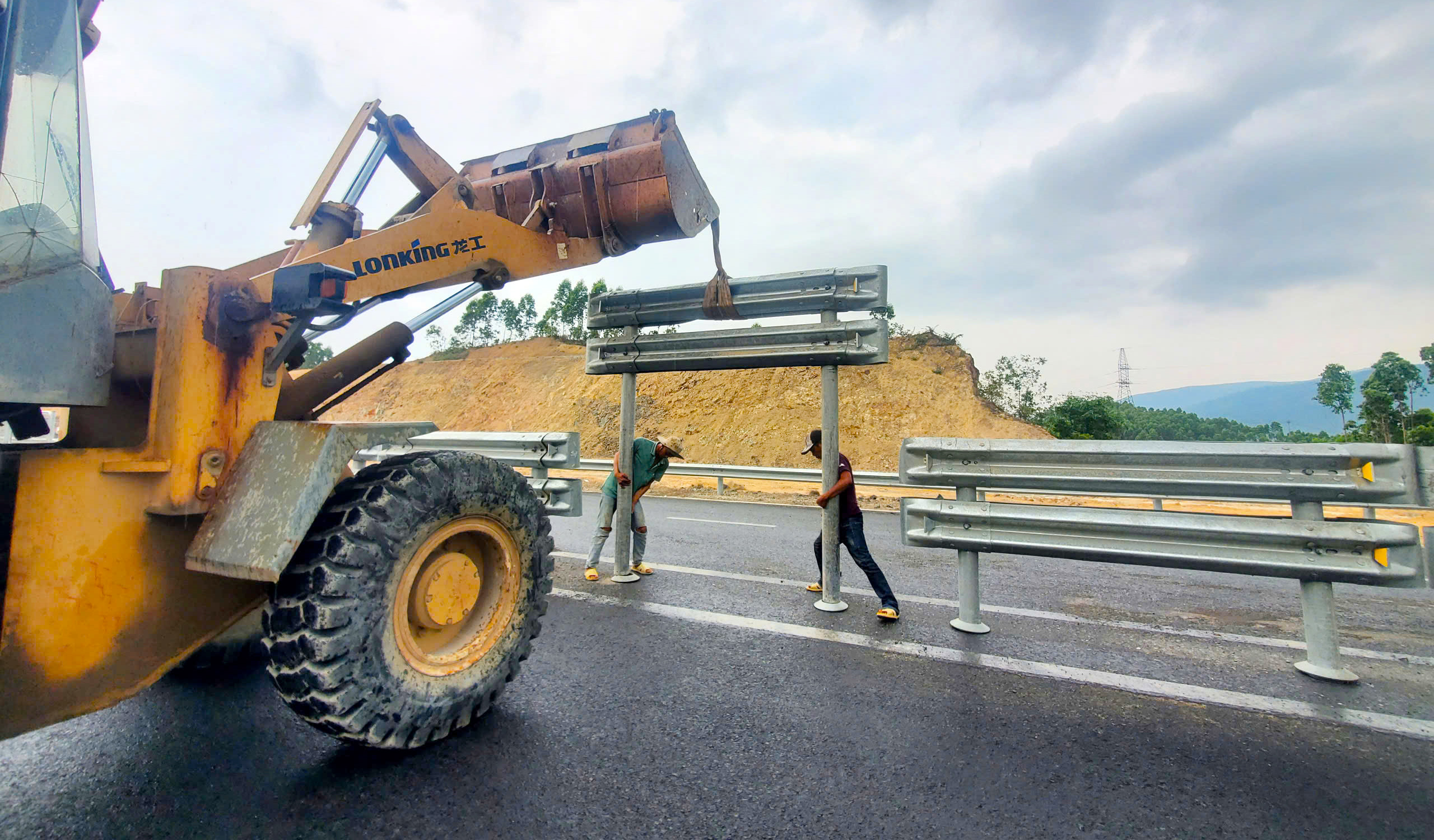 Lắp đặt hộ lan, hoàn thiện dải phân cách hai làn đường cao tốc Quy Nhơn - Chí Thạnh
