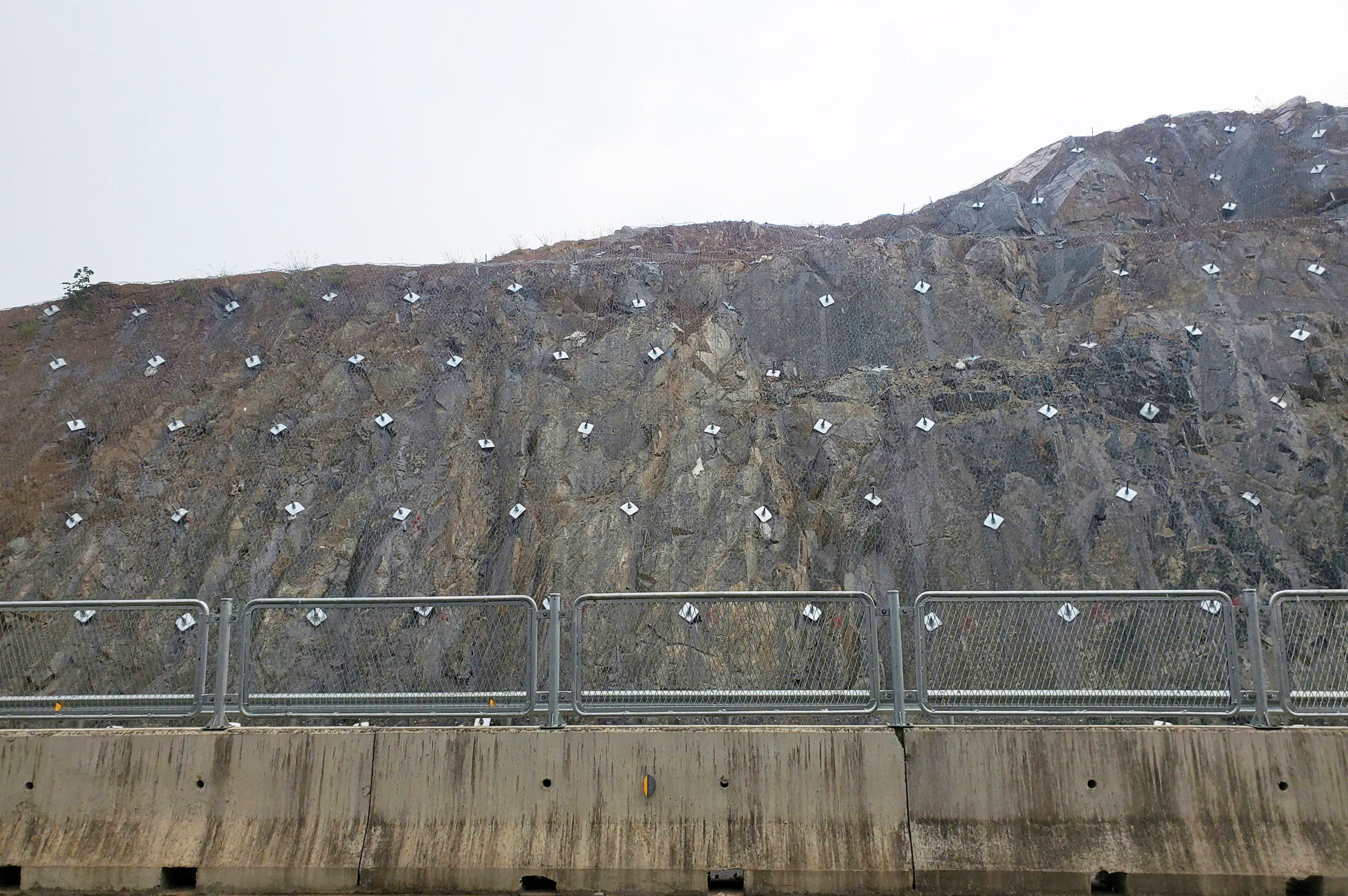 Mái taluy đá dọc đường cao tốc được gia cố bằng lưới, đinh thép nhằm ngăn sạt lở