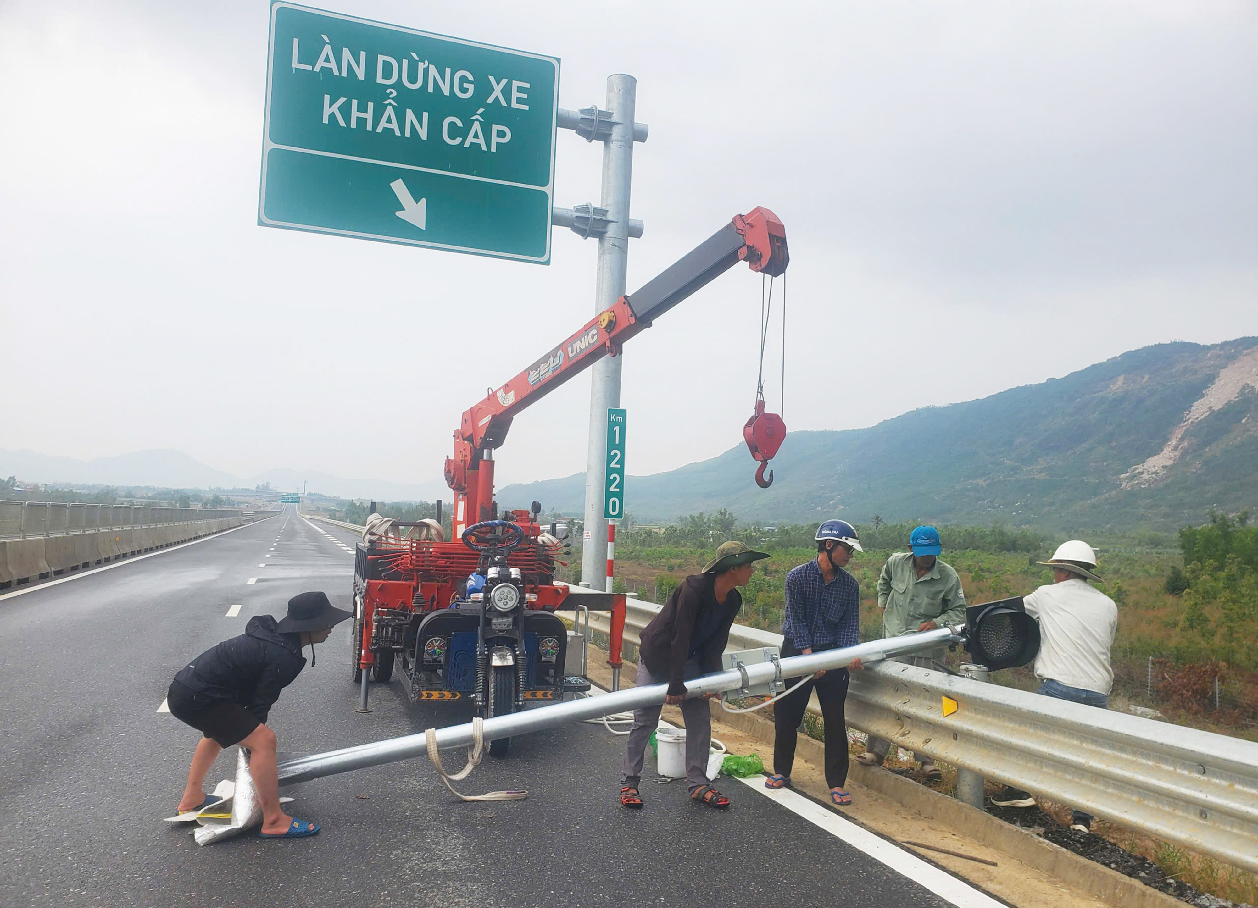 Lắp đặt các đèn báo hiệu cuối cùng tại gói thầu 11XL, dự án Quy Nhơn – Chí Thạnh