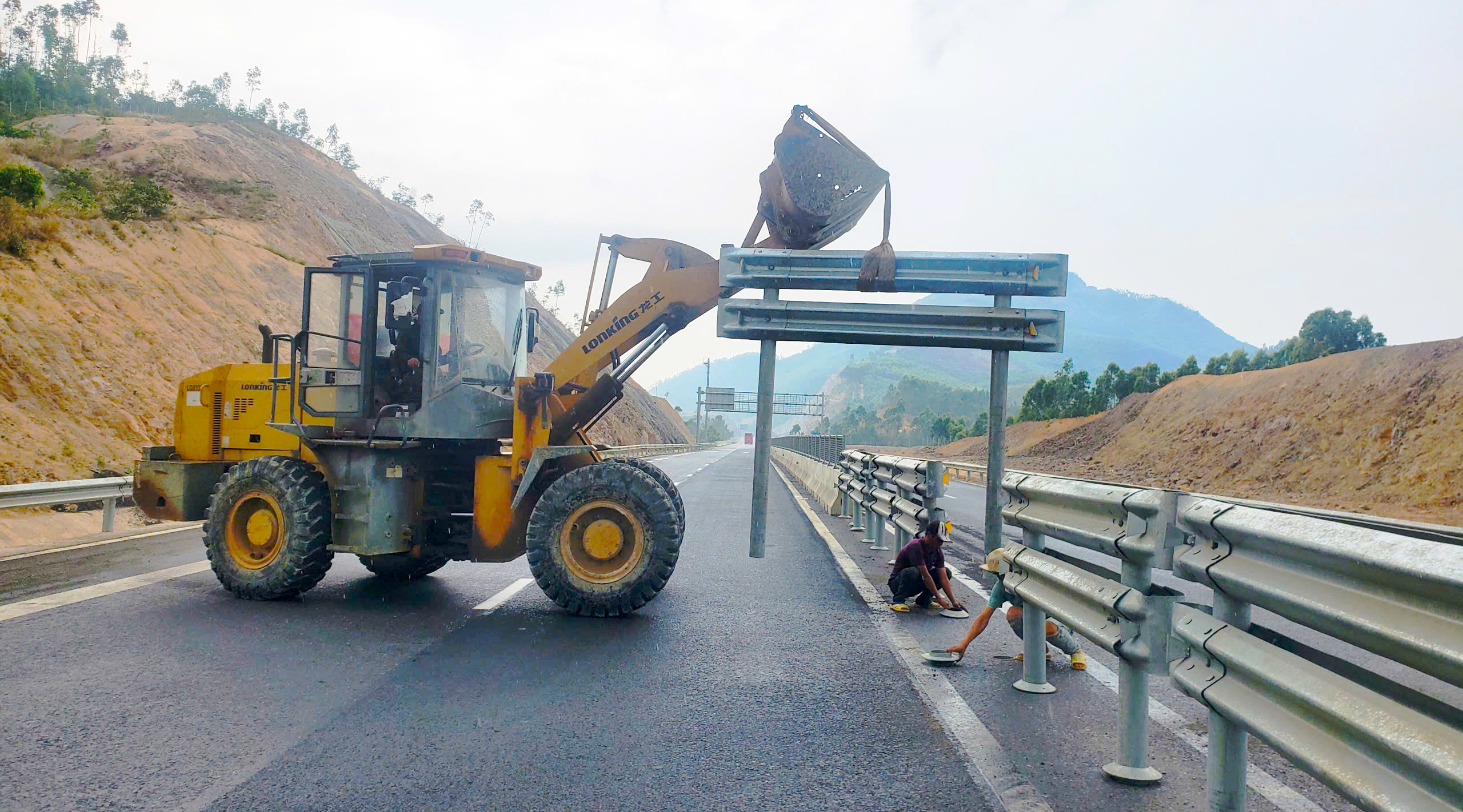 Dọc tuyến qua khu vực đồi núi phía Bắc đèo Cù Mông (ranh giới Gia Lai, Đắk Lắk), các tổ thi công nỗ lực hoàn thiện hệ thống an toàn giao thông, lắp đặt hộ lan, đèn báo hiệu và hạng mục phụ trợ tại các nút giao liên thông với quốc lộ.