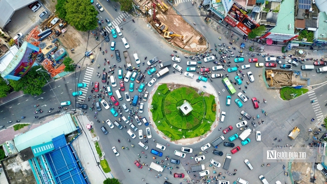 Để hạn chế ùn ứ, vòng xoay Dân Chủ đang được thu hẹp, cắt gọt hai bên và đổ bê tông phẳng cho xe cộ lưu thông. Việc thu nhỏ vòng xoay là cần thiết để di dời hạ tầng kỹ thuật và xây dựng ga ngầm metro số 2.