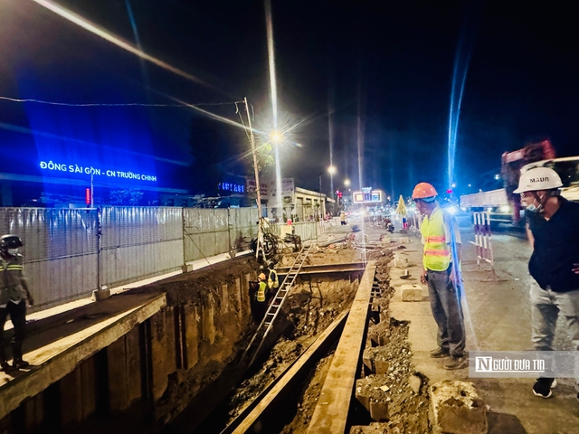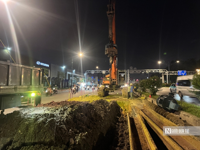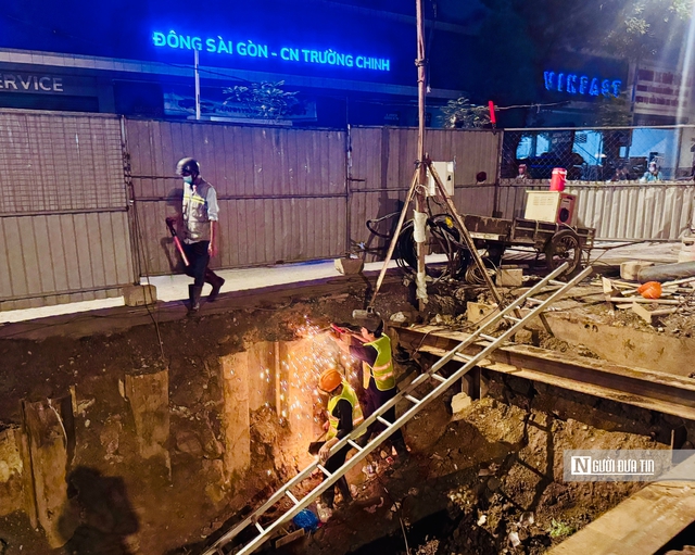 Vào ban đêm, công trình dự án trên vẫn đang được đẩy nhanh các công tác khoan đào, để thực hiện việc lắp ráp các thiết bị, xây dựng tuyến metro số 2.