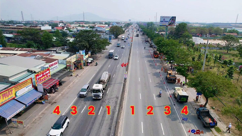 Hình ảnh minh họa các làn đường trên Quốc lộ 51