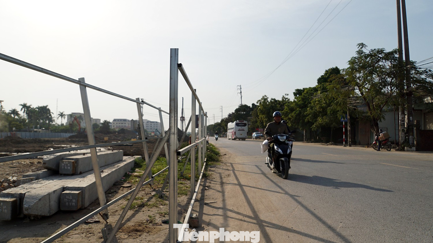 Lực lượng chức năng tổ chức chặn 1 chiều đường tỉnh 353 để lấy mặt bằng thi công, đảm bảo an toàn khi thi công cầu và đường dẫn lên cầu Hải Thành.