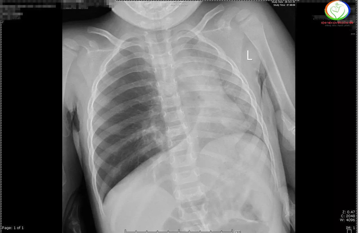 Qua phim chụp X –quang cho thấy các trẻ có hình ảnh ứ khí, mờ quanh rốn phổi. Riêng bệnh nhi N.N.L phổi trái giảm thể tích, kém sáng, xẹp phổi dạng dài thùy dưới phổi phải. Các bác sĩ đã hội chẩn khẩn cấp và chỉ định nội soi khí thanh phế quản cấp cứu gắp dị vật cho trẻ.