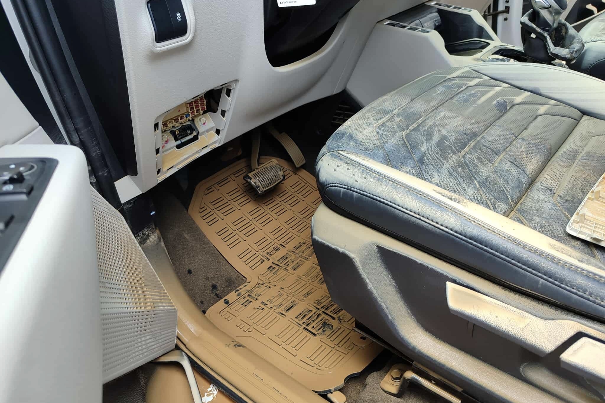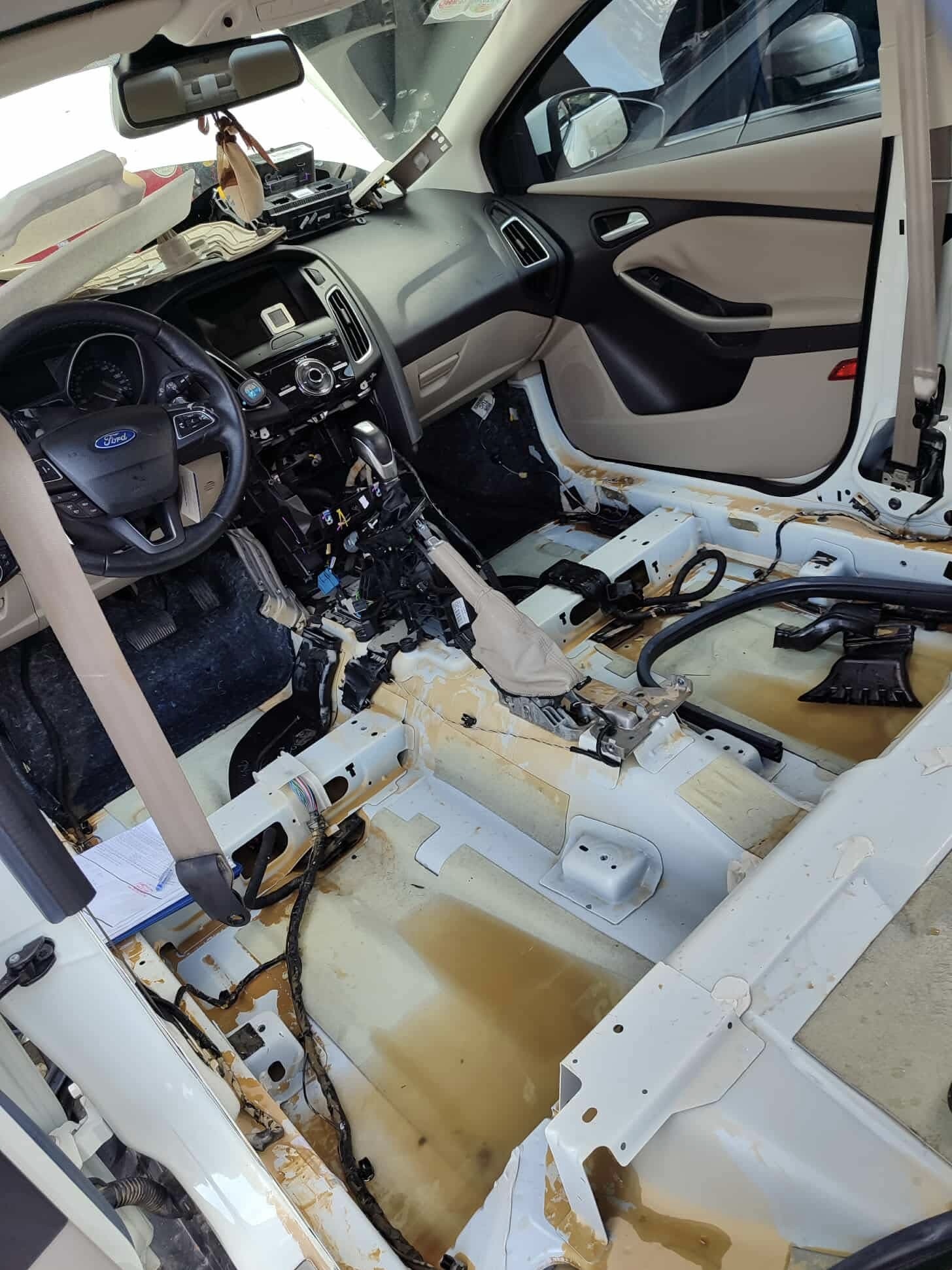 Bên trong một chiếc ôtô ngập nước đang chờ sửa chữa tại Nice Car. Ảnh: NVCC.