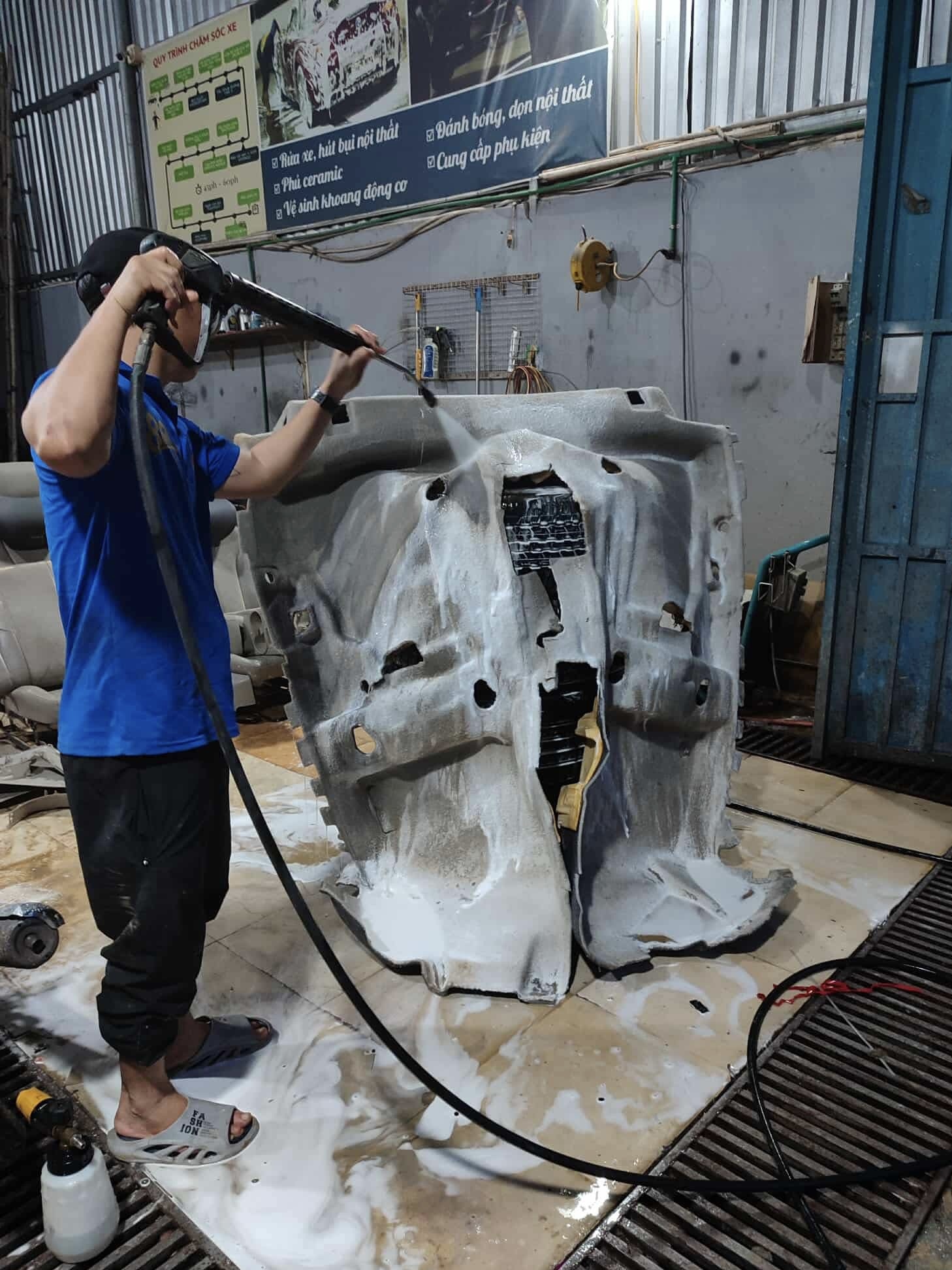 "Tôi tưởng chỉ cần vệ sinh nội thất, ai ngờ thợ bảo nước đã ngấm dưới sàn, phải tháo toàn bộ ghế ra để sấy. Nghe chi phí gần 11 triệu đồng mà tôi choáng", chị kể.
