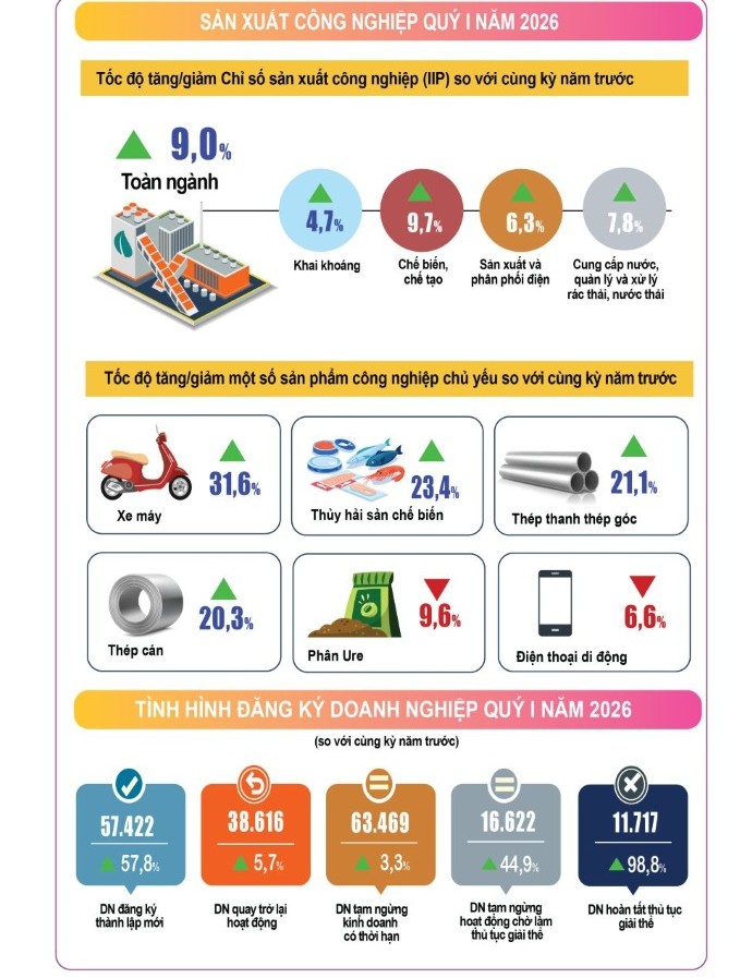 Những con số này được ghi nhận trong báo cáo tình hình kinh tế – xã hội quí 1 năm 2026 do Cục Thống kê (Bộ Tài chính) công bố sáng ngày 4-4.