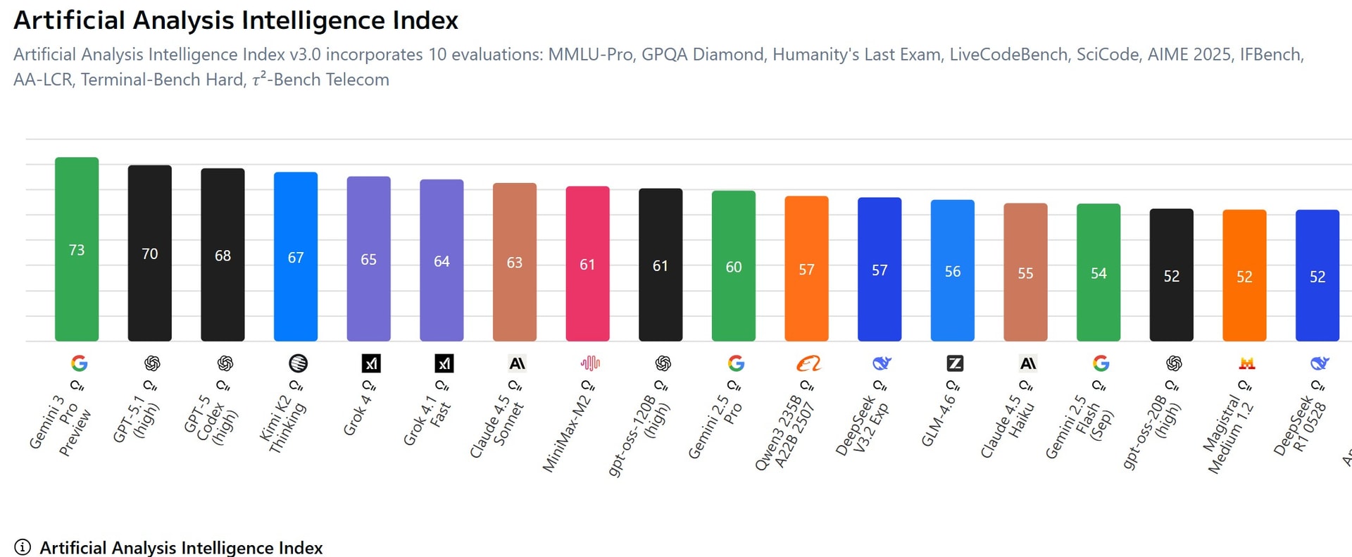 Gemini 3 Pro vượt GPT-5.1 để dẫn đầu BXH Intelligence Index của Artificial Analysis - Ảnh PV chụp màn hình
