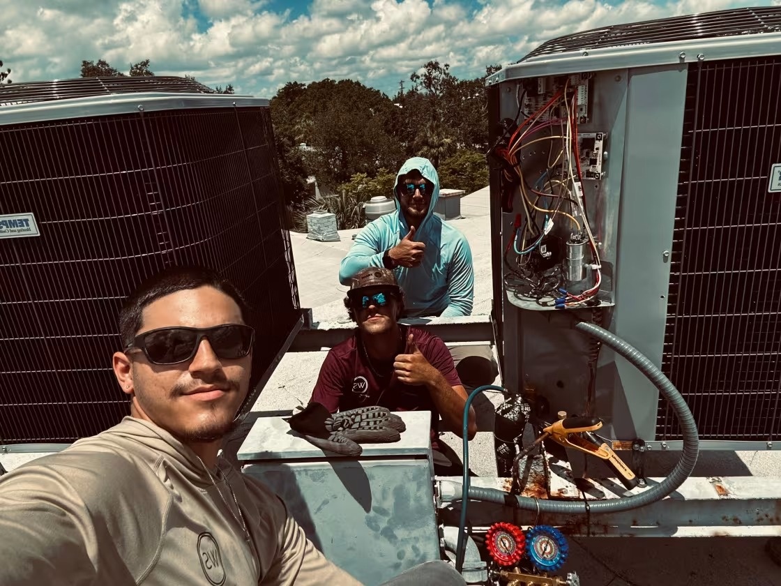 Andrew Salgado (bên trái) hạnh phúc với quyết định chuyển hướng sau 2 năm học việc để trở thành kỹ thuật viên HVAC. Ảnh: Andrew Salgado.
