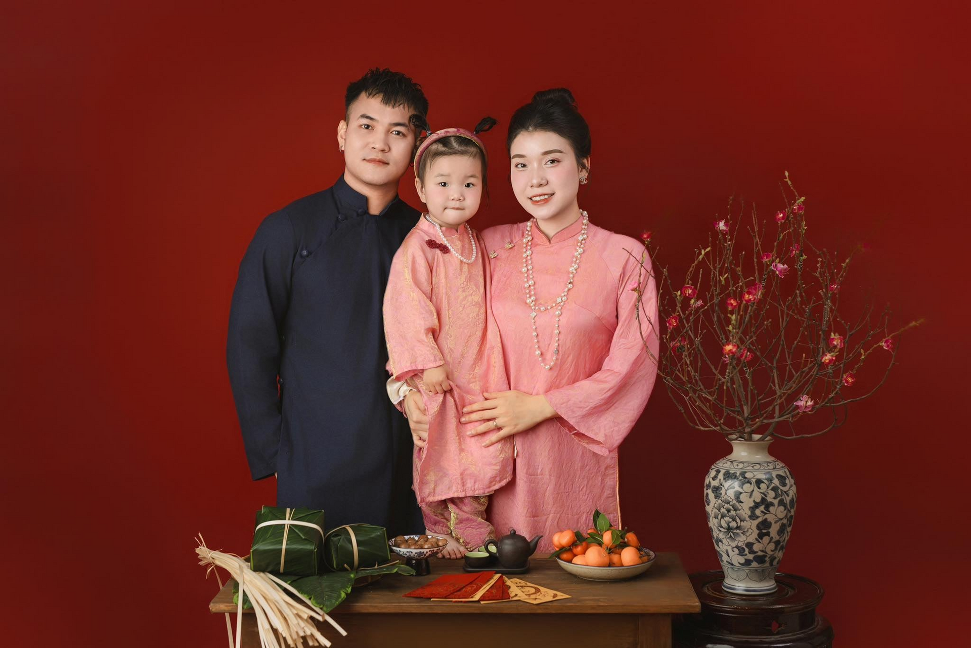 Gia đình anh Phạm Quyền - chị Quỳnh Giang và bé Beo. Ảnh: PV