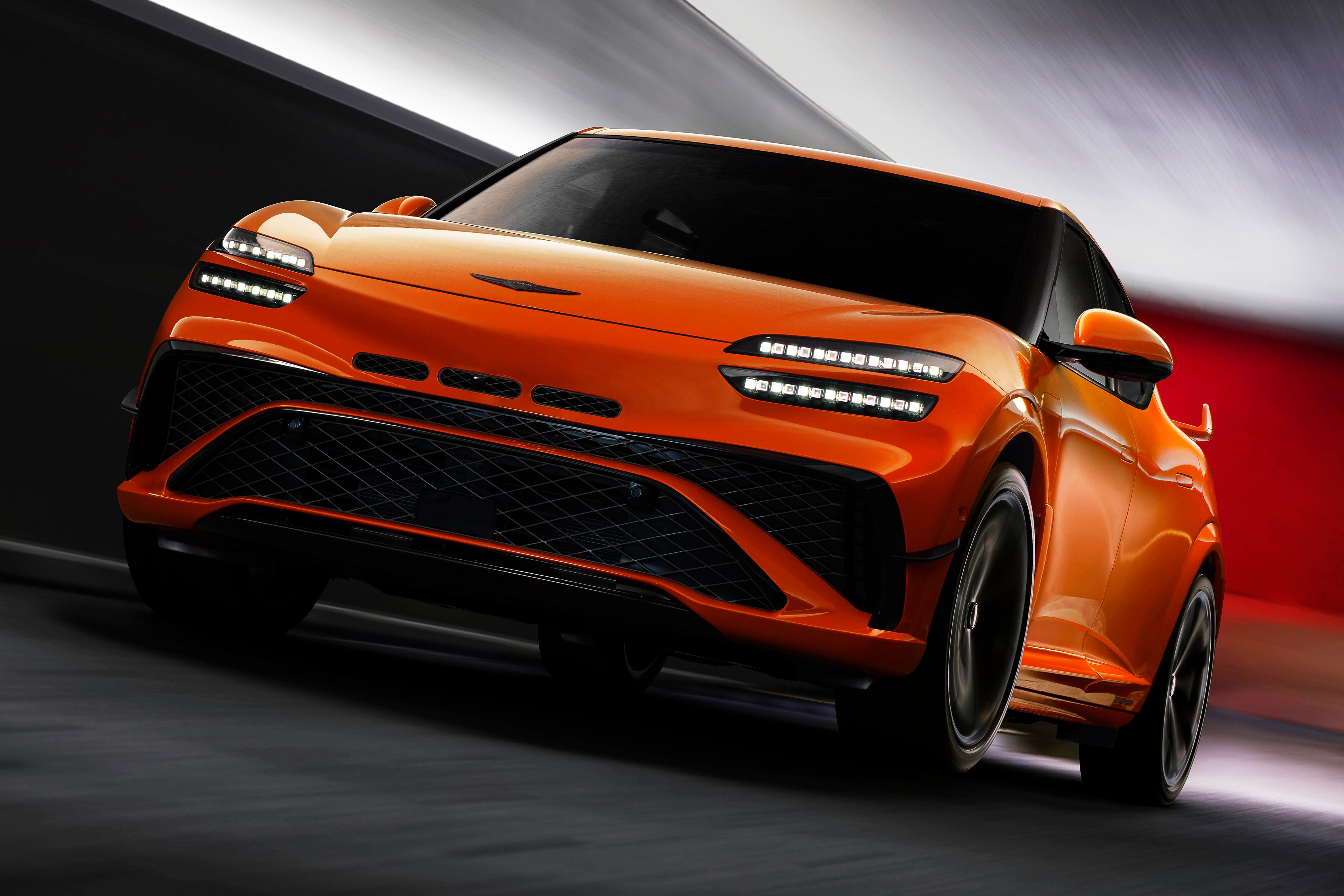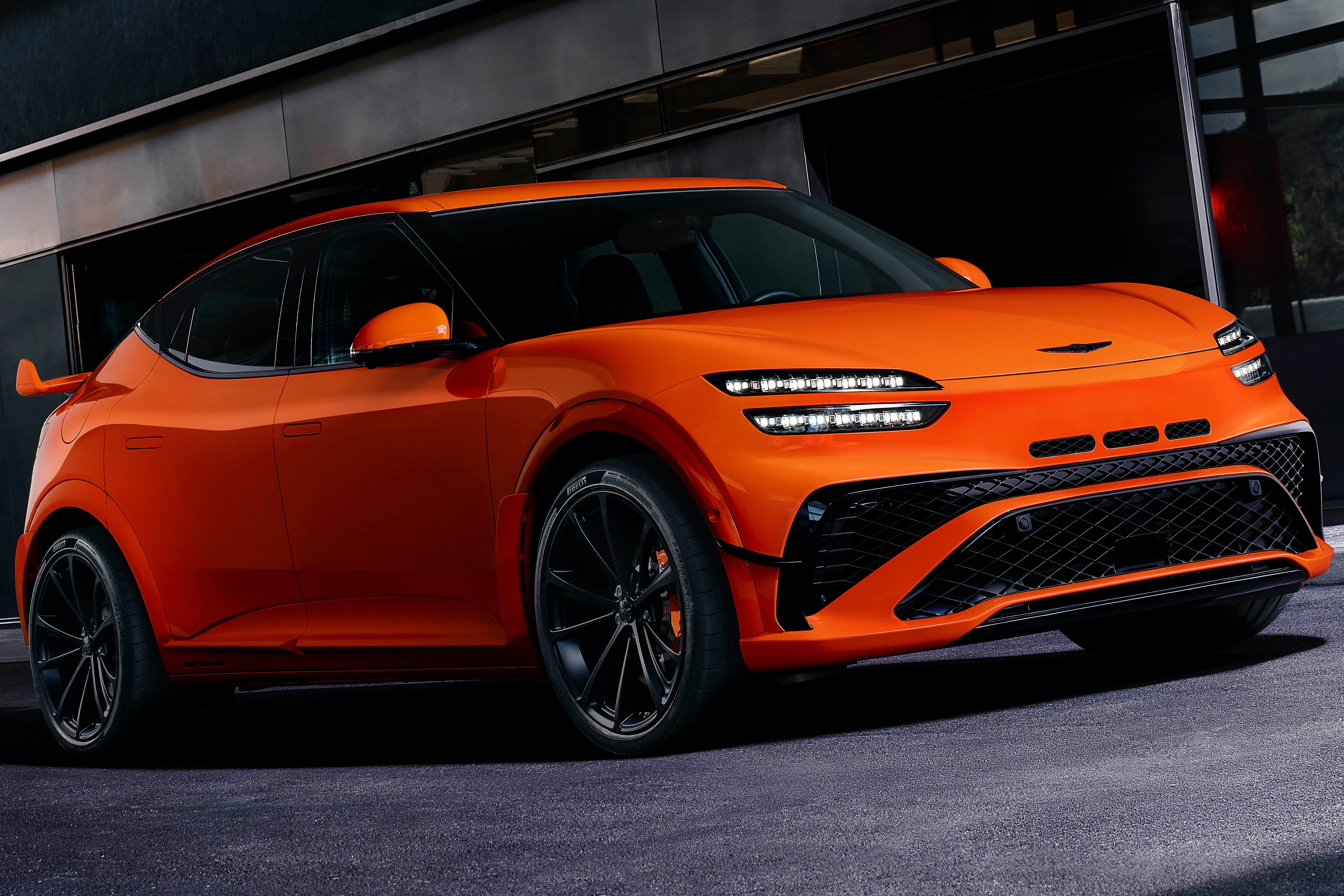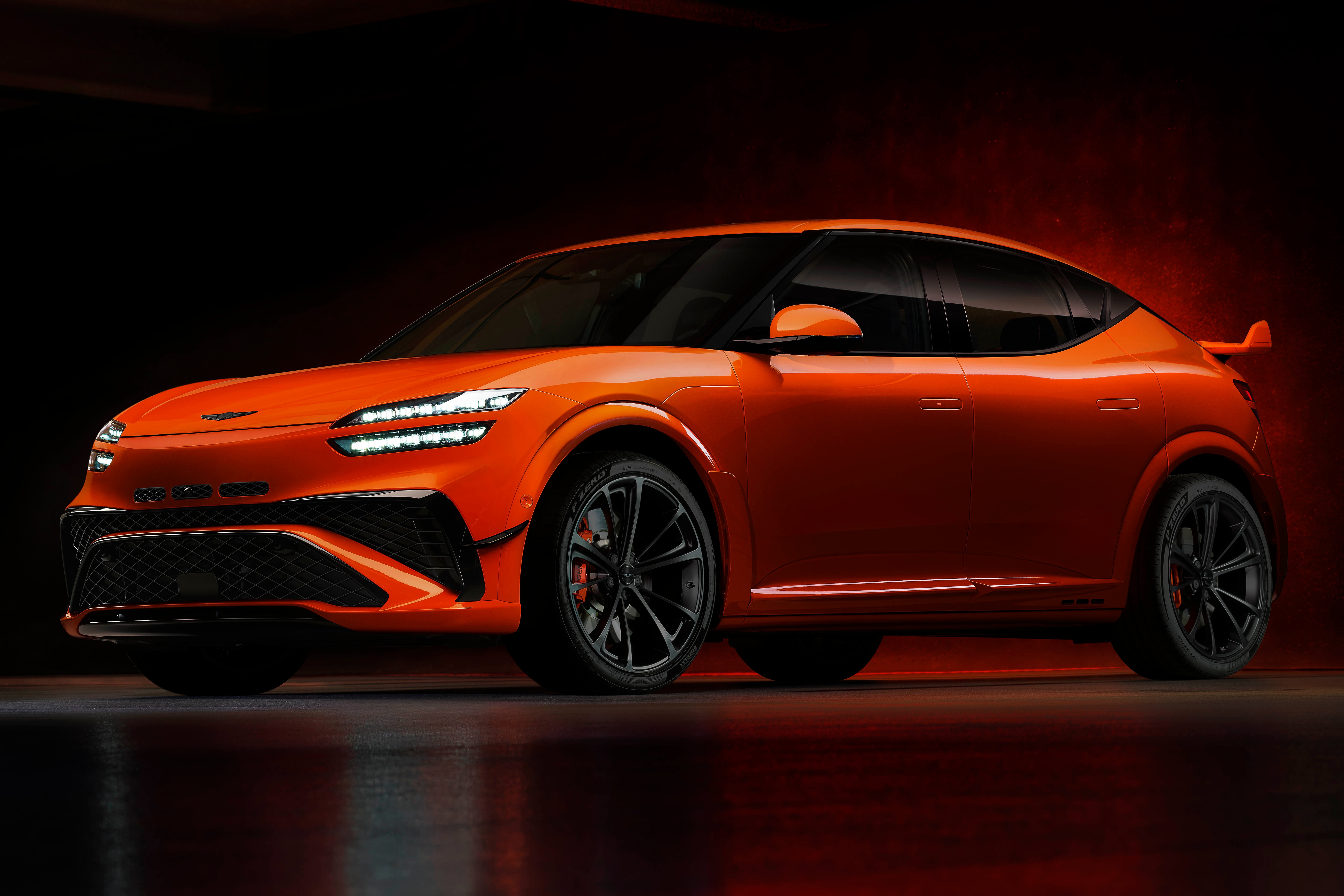 Dựa vào bản concept ra mắt vào năm ngoái, Genesis GV60 Magma sở hữu thiết kế thân rộng so với phiên bản GV60 tiêu chuẩn. Xe được bổ sung 3 khe lấy gió ở phần đầu.