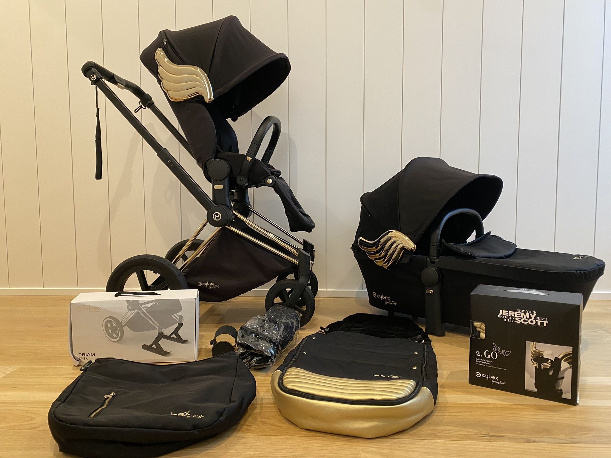Năm 2023, hãng ghế trẻ em Cybex từng hợp tác cùng Jeremy Scott ra mắt bộ sưu tập thiết bị hỗ trợ cho trẻ em mang tên Wings (nghĩa là đôi cánh). Trong bộ sưu tập, chiếc nôi dùng trên ôtô với đôi cánh thiết kế mạ vàng có giá lên đến gần 1.000 USD.