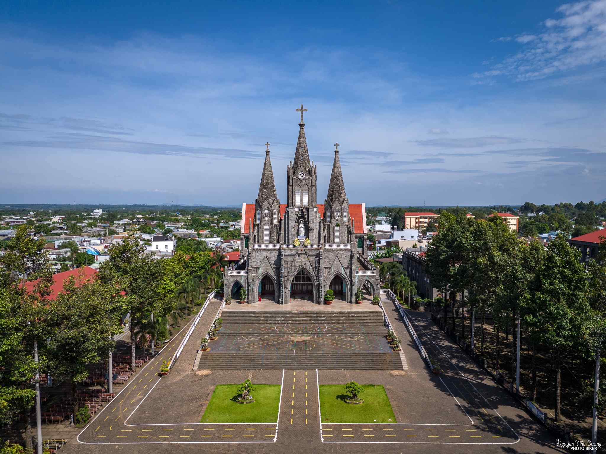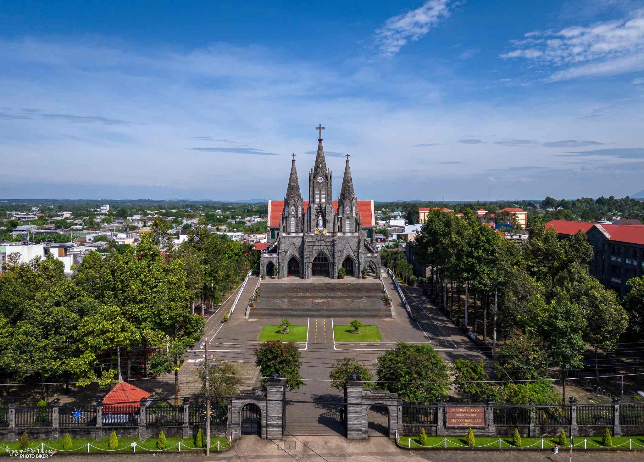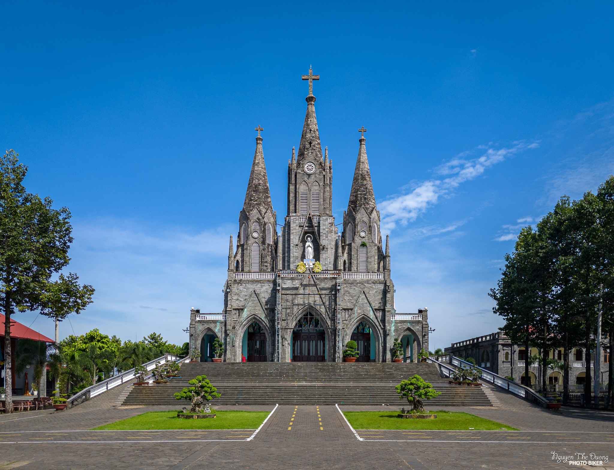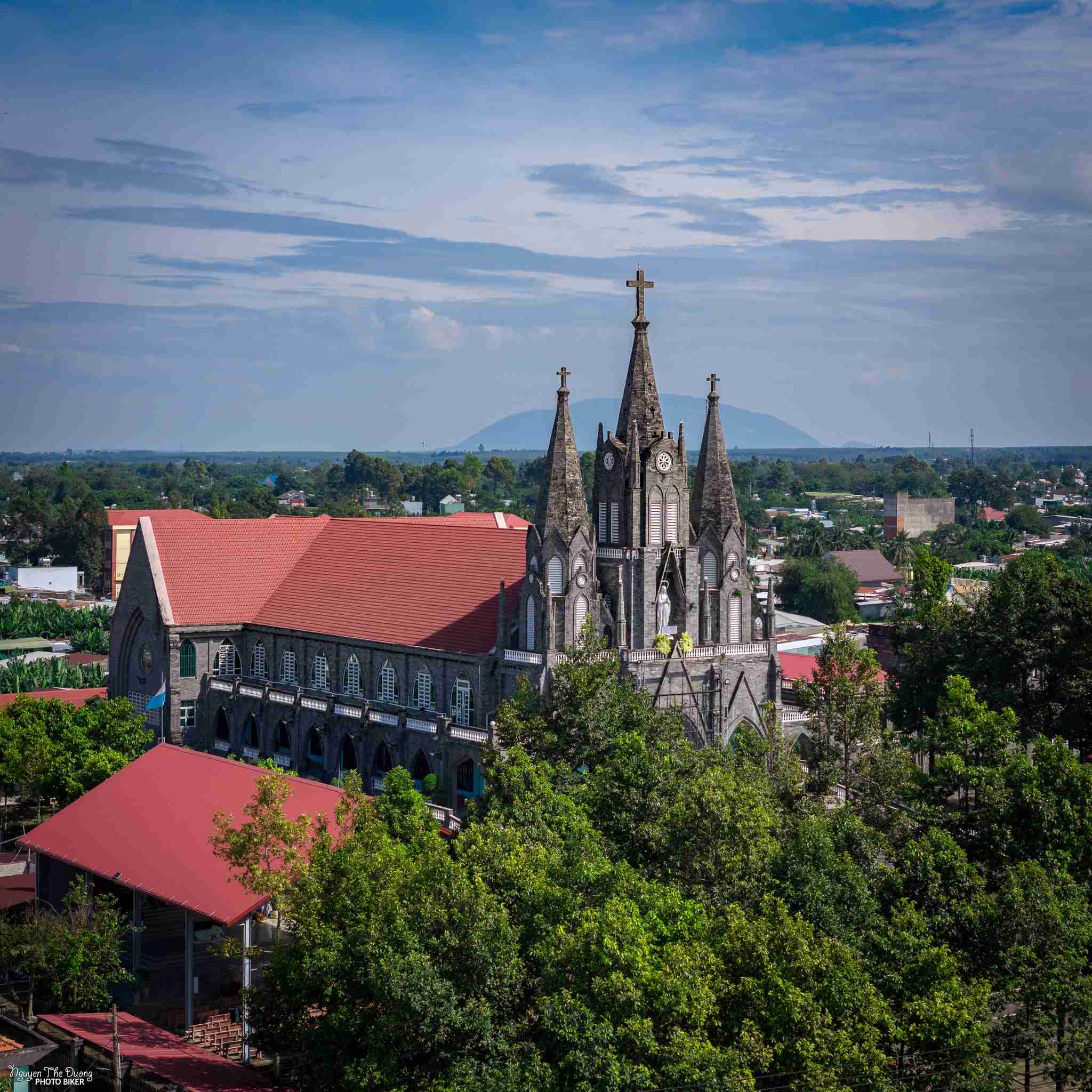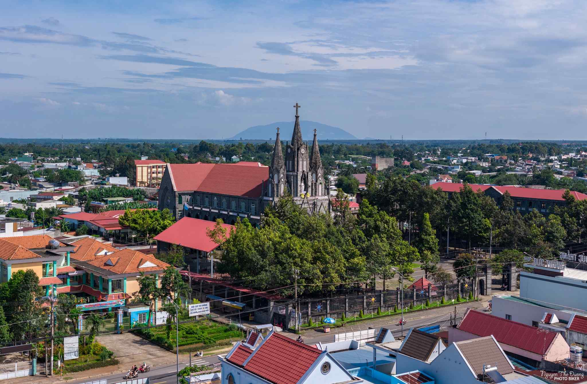 Từ khuôn viên nhà thờ, nhìn về phía xa, du khách có thể thấy núi Chứa Chan. Ảnh: Nguyễn Thế Dương
