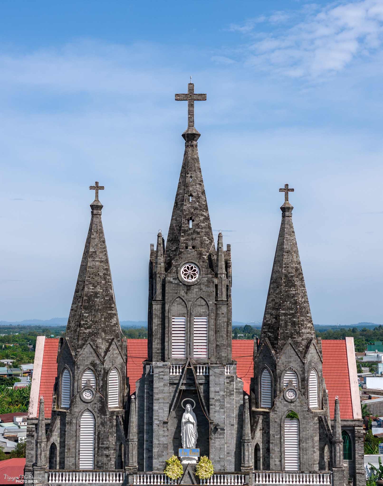 Điểm nhấn của công trình là ba tháp cao, trong đó tháp ở giữa cao hơn hai tháp hai bên, tạo thế cân đối, thanh thoát. Ảnh: Nguyễn Thế Dương