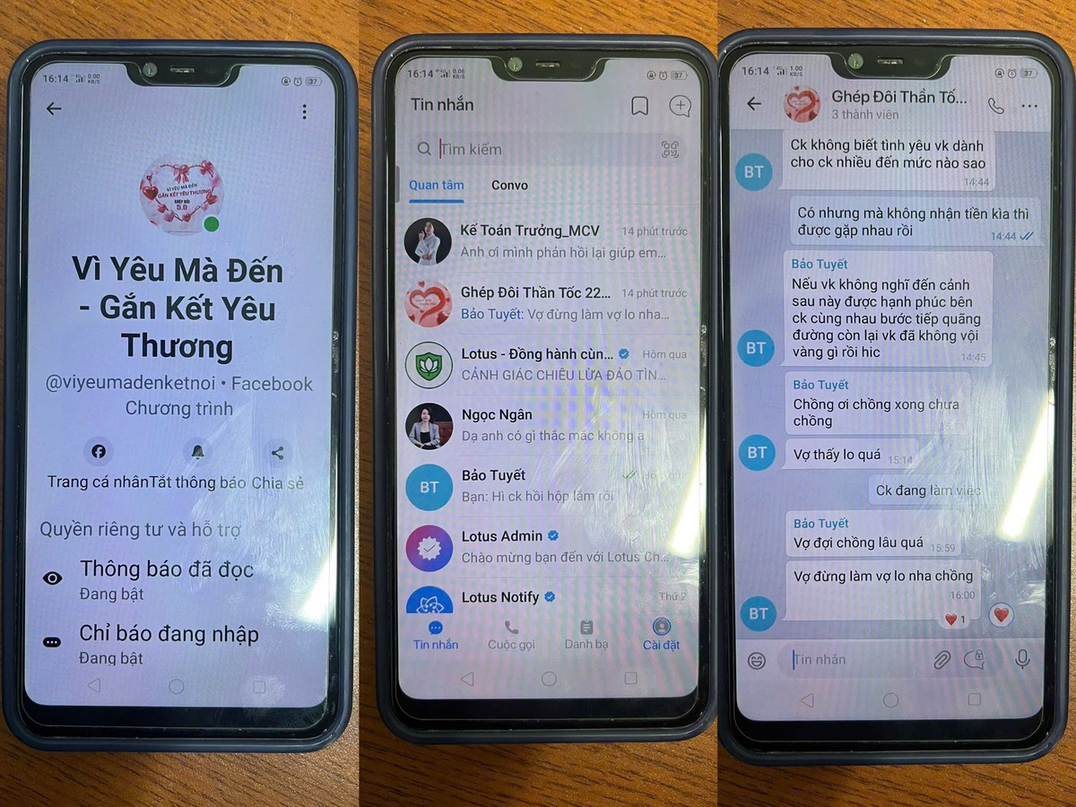 Ngay sau khi tiếp nhận thông tin, Công an xã Yên Thủy đã có mặt tại trụ sở ngân hàng, làm việc với khách hàng là ông B.V.N (SN 1987, trú tại xã Yên Thủy). Tại đây, ông N cho biết do có nhu cầu tìm bạn gái nên đã tải và sử dụng ứng dụng chat “Lotus”, tham gia các phòng trò chuyện có tên “ghép đôi thần tốc” để làm quen, kết bạn.