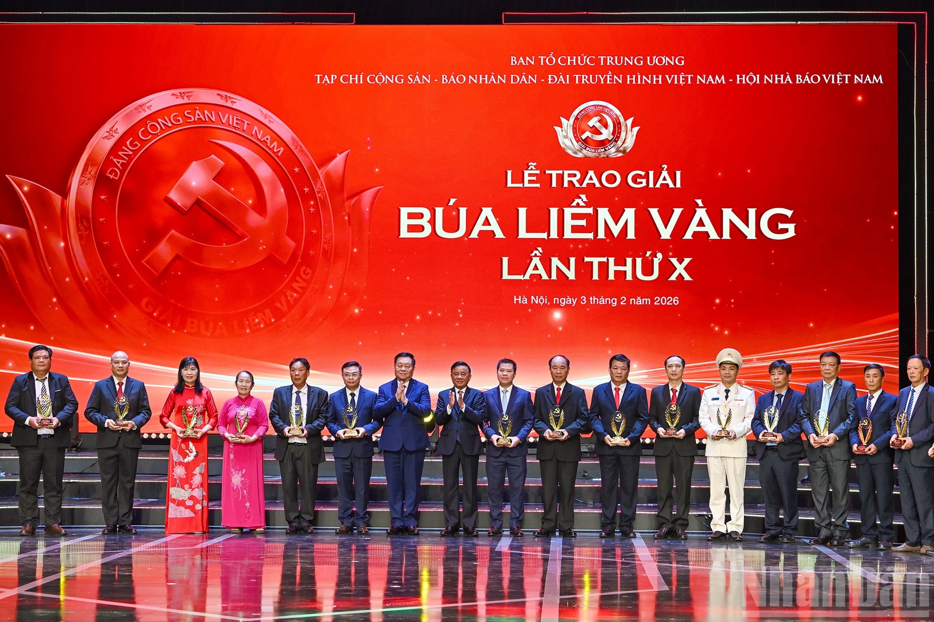 Tổng Bí thư Tô Lâm và Trưởng Ban Tổ chức Trung ương Lê Minh Hưng trao biểu trưng tặng các Bí thư chi bộ xuất sắc tại buổi lễ (Ảnh: Báo Nhân Dân)