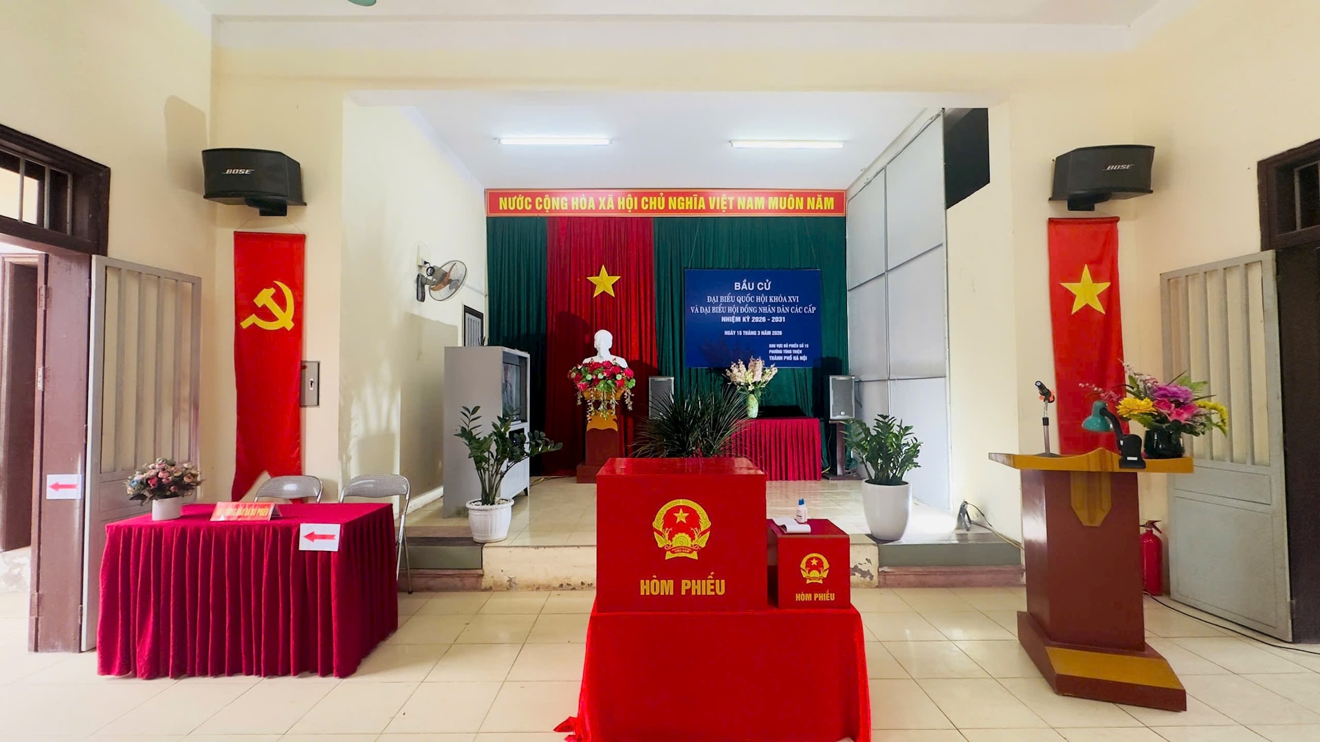 Trên nhiều tuyến phố và khu dân cư, cờ Tổ quốc, băng rôn, khẩu hiệu tuyên truyền được treo trang trọng. Tại các nhà văn hóa, danh sách cử tri cùng tiểu sử tóm tắt của các ứng cử viên được niêm yết công khai để người dân theo dõi, tìm hiểu. Các khu vực bỏ phiếu cũng đang hoàn thiện những khâu chuẩn bị cuối cùng, sẵn sàng phục vụ cử tri trong ngày bầu cử.