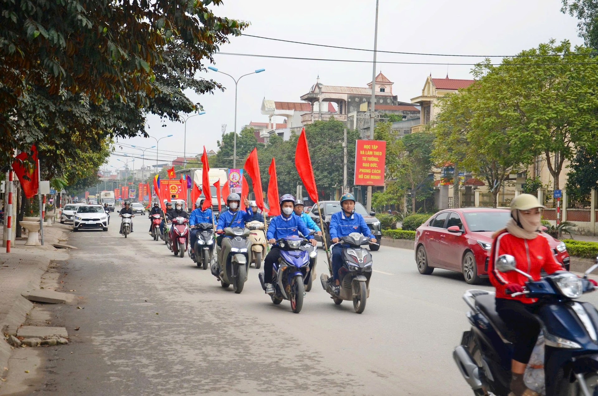 Không khí hướng tới ngày bầu cử 15-3 lan tỏa trên các tuyến phố phường Tùng Thiện. Ảnh: PL