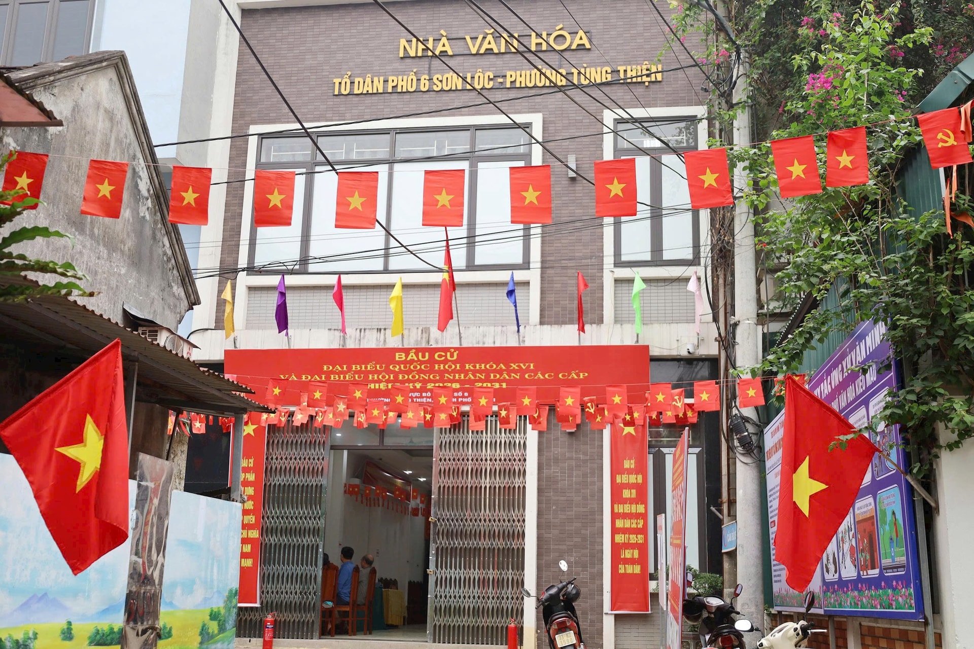 Theo ghi nhận của phóng viên Báo và Phát thanh, Truyền hình Hà Nội, nhiều tuyến đường, nhà văn hóa và địa điểm bỏ phiếu trên địa bàn phường Tùng Thiện được treo cờ, băng rôn, khẩu hiệu tuyên truyền, tạo không khí phấn khởi trong nhân dân.