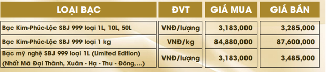 Bảng giá bạc hôm nay của Sacombank-SBJ tại nhịp điều chỉnh 14h chiều.