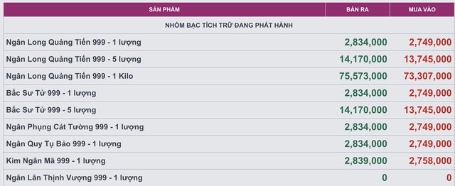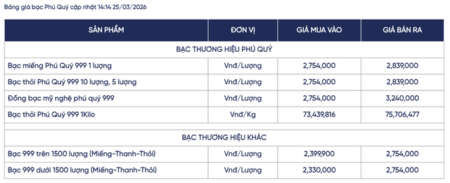 Chuyên trang Gia đình và Xã hội ghi nhận giá bạc hôm nay tiếp đà tăng trưởng khi Phú Quý mở phiên ở vùng 76 triệu đồng/kg, đến nhịp điều chỉnh chiều nay, giá bạc của hệ thống này lùi về vùng 75,3 triệu đồng/kg.