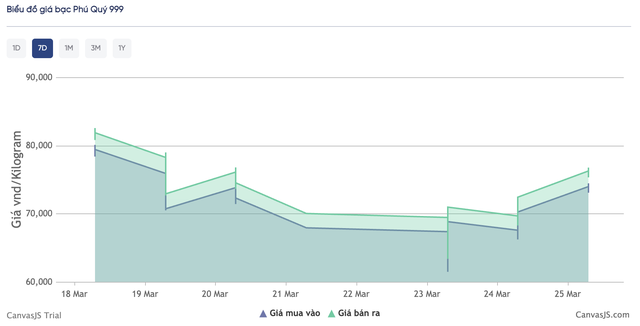 Biểu đồ kỹ thuật giá bạc trong 7 ngày qua của hệ thống Phú Quý.