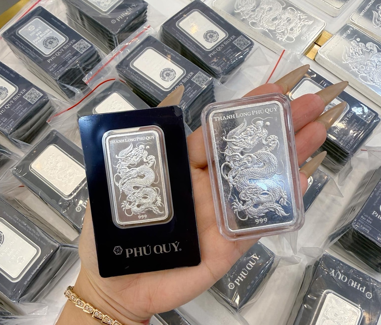 Phân khúc bạc thỏi ghi nhận mức giảm mạnh nhất trong phiên. Tại Phú Quý, bạc thỏi 999 giảm 1,040 triệu đồng/kg ở chiều mua và 1,120 triệu đồng/kg ở chiều bán, đưa giá xuống còn 72,079 triệu đồng/kg mua vào và 74,266 triệu đồng/kg bán ra.